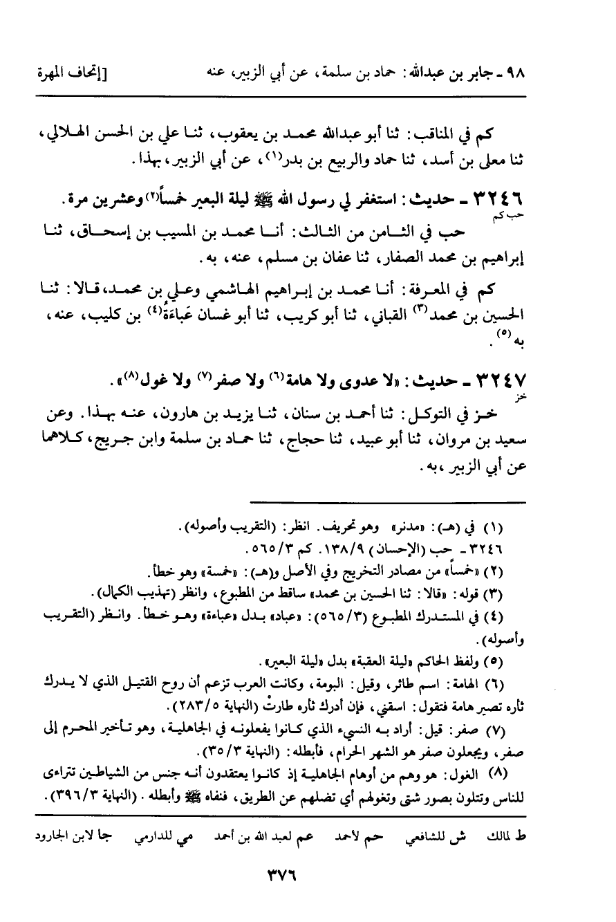3247 - حَدِيثُ (خز) : " لا عَدْوَى وَلا هَامَةَ وَلا صَفَرَ وَلا غُولَ ".