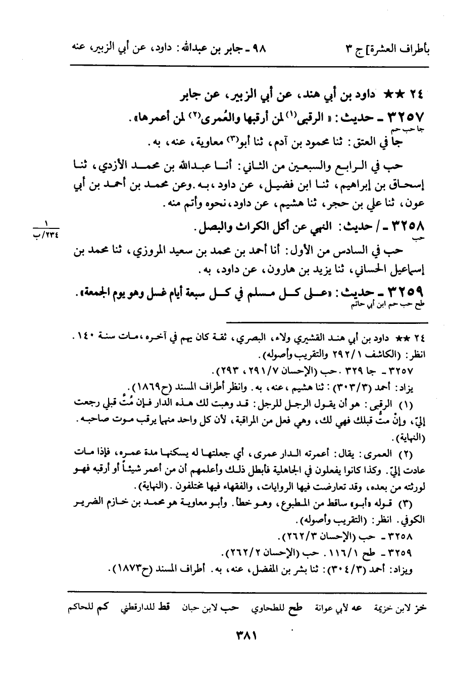 3257 - دَاوُدُ بْنُ أَبِي هِنْدٍ، عَنْ أَبِي الزُّبَيْرِ، عَنْ جَابِرٍ