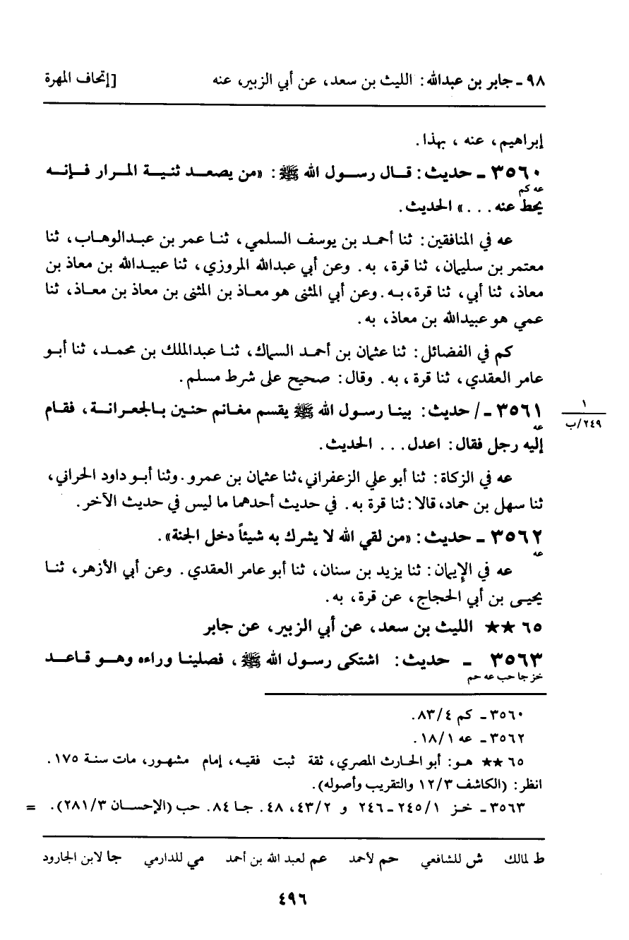 ـ اللَّيْثُ بْنُ سَعْدٍ، عَنْ أَبِي الزُّبَيْرِ، عَنْ جَابِرٍ