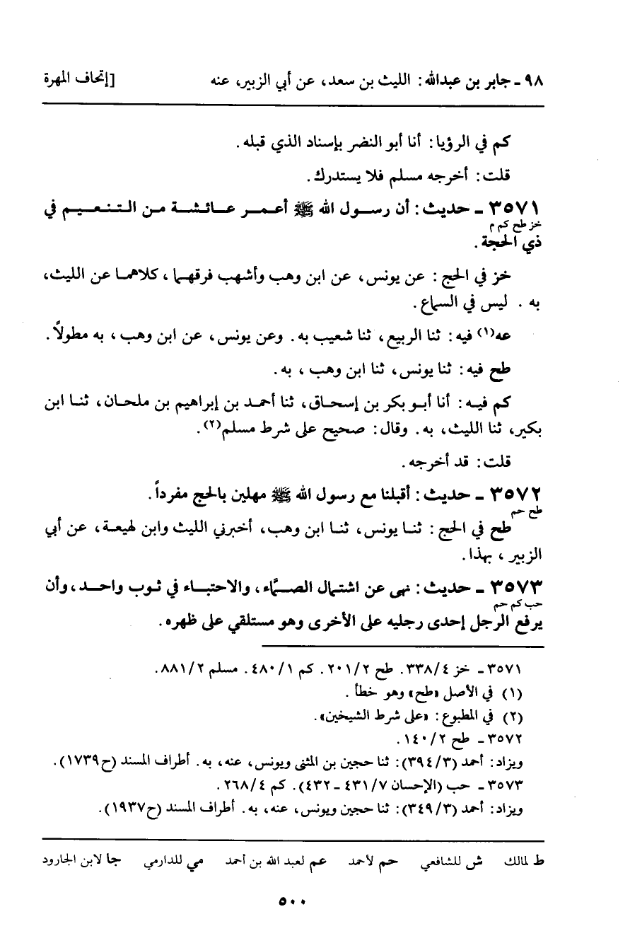 3572 - حَدِيثُ (طح حم) : أَقْبَلْنَا مَعَ رَسُولِ اللَّهِ صَلَّى اللَّهُ عَلَيْهِ وَسَلَّمَ مُهِلِّينَ بِالْحَجِّ مُفْرَدًا.