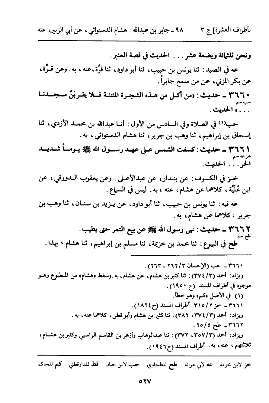 3662 - حَدِيثُ (طح حم) : نَهَى رَسُولُ اللَّهِ صَلَّى اللَّهُ عَلَيْهِ وَسَلَّمَ عَنْ بَيْعِ التَّمْرِ حَتَّى يَطِيبَ.