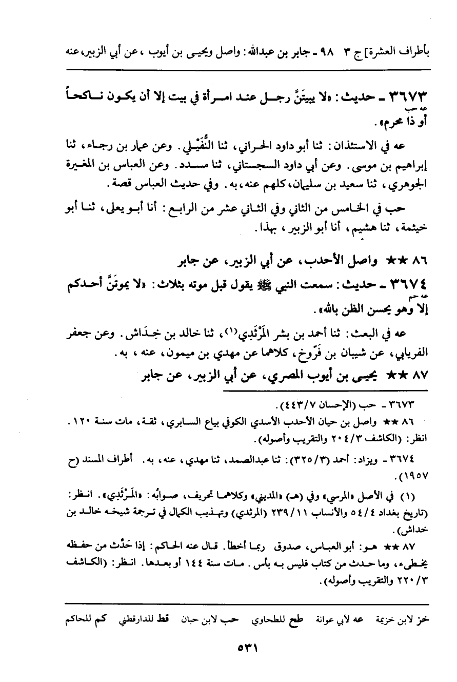 3675 - يَحْيَى بْنُ أَيُّوبَ الْمِصْرِيُّ، عَنْ أَبِي الزُّبَيْرِ، عَنْ جَابِرٍ
