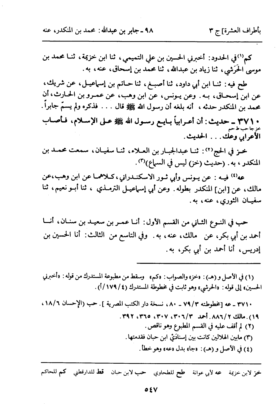 (خز) فِي الْحَجِّ: ثنا عَبْدُ الْجَبَّارِ بْنُ الْعَلاءِ، ثنا سُفْيَانُ، سَمِعْتُ مُحَمَّدَ بْنَ الْمُنْكَدِرِ، بِهِ: حَدِيثُ (خز) لَيْسَ فِي السَّمَاعِ.