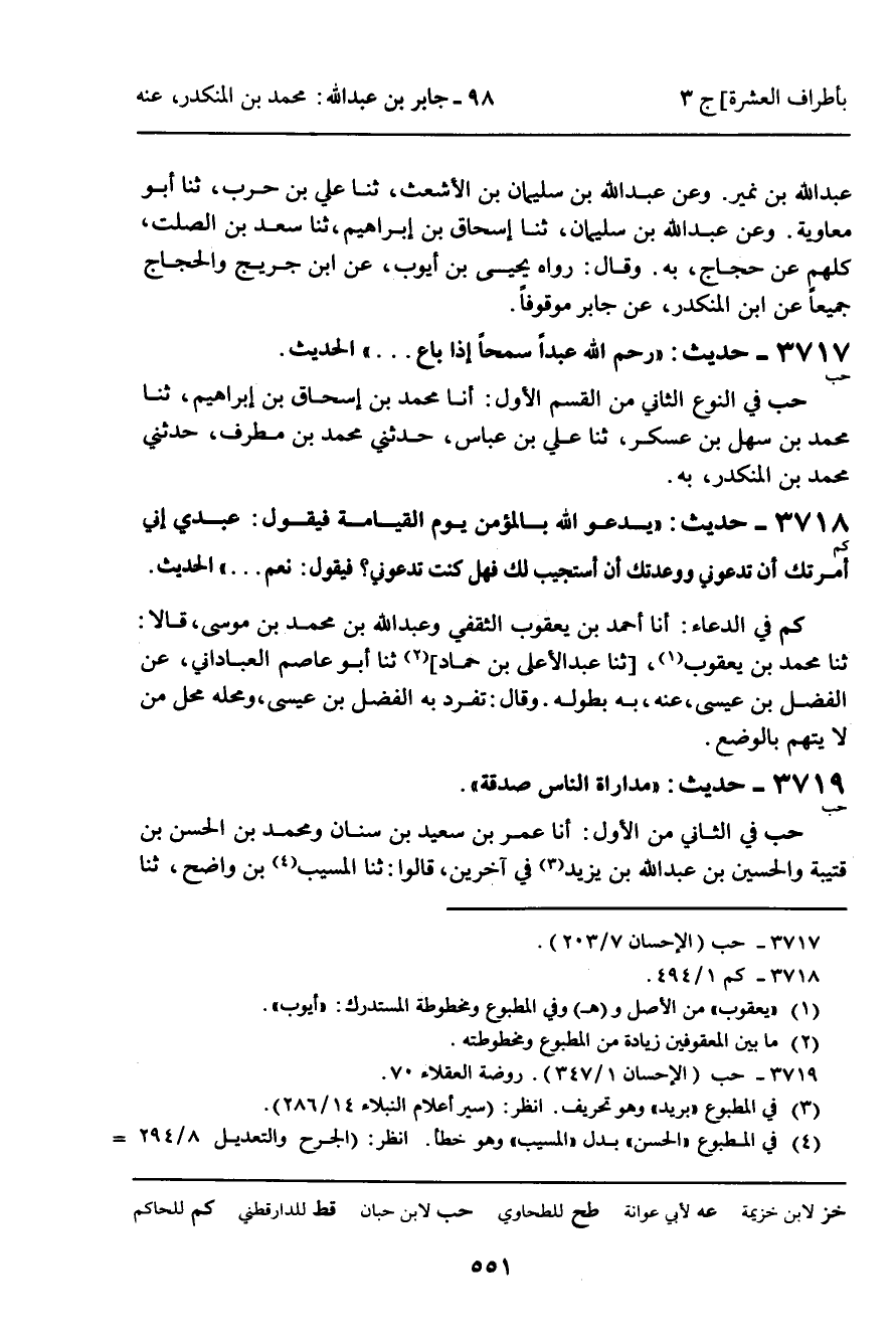 3719 - حَدِيثُ (حب) : " مُدَارَاةُ النَّاسِ صَدَقَةٌ ".