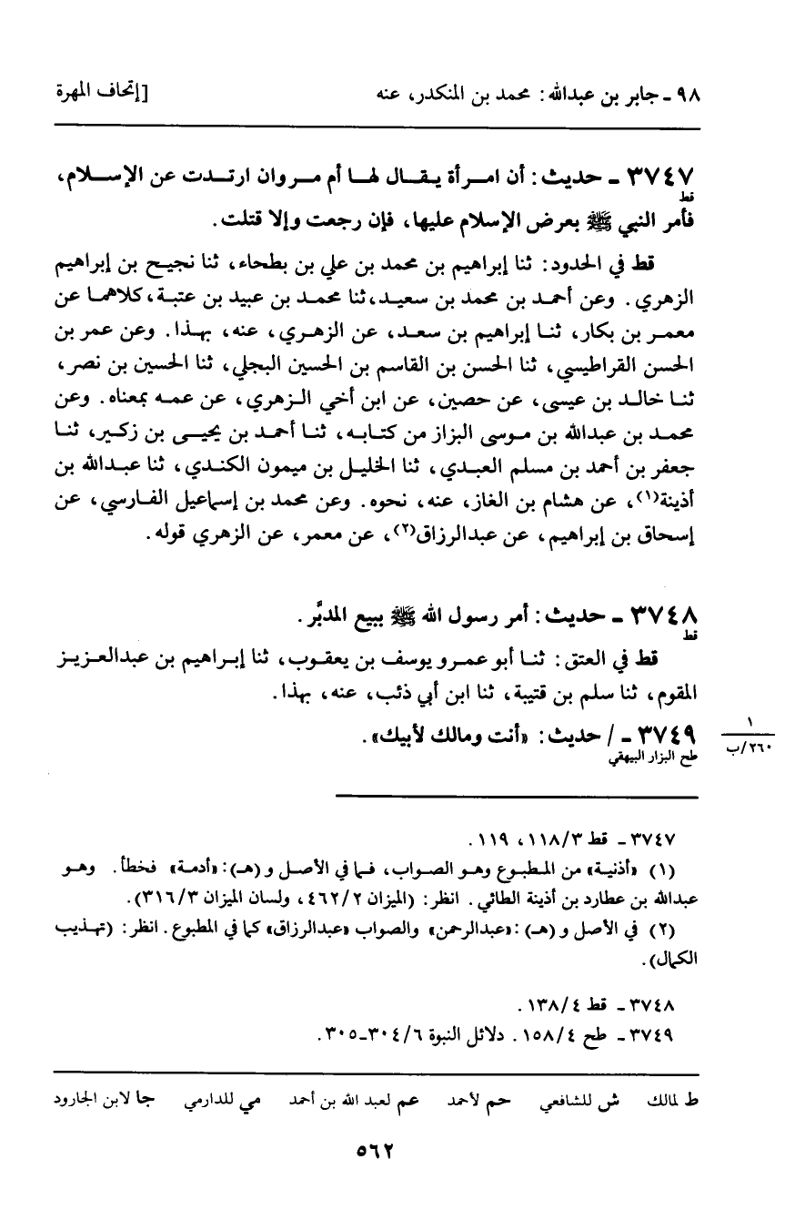 3749 - حَدِيثُ (طح الْبَزَّارِ الْبَيْهَقِيِّ) : " أَنْتَ وَمَالُكَ لأَبِيكَ ".