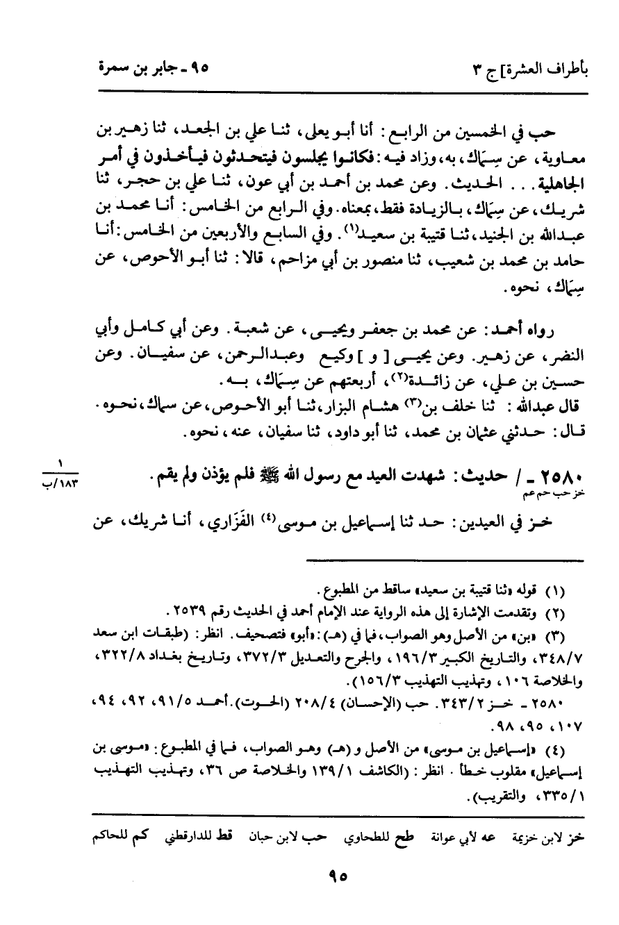 2580 - حَدِيثُ (حز حب حم عم) : " شَهِدْتُ الْعِيدَ مَعَ رَسُولِ اللَّهِ صَلَّى اللَّهُ عَلَيْهِ وَسَلَّمَ فَلَمْ يُؤَذِّنْ وَلَمْ يُقِمْ ".