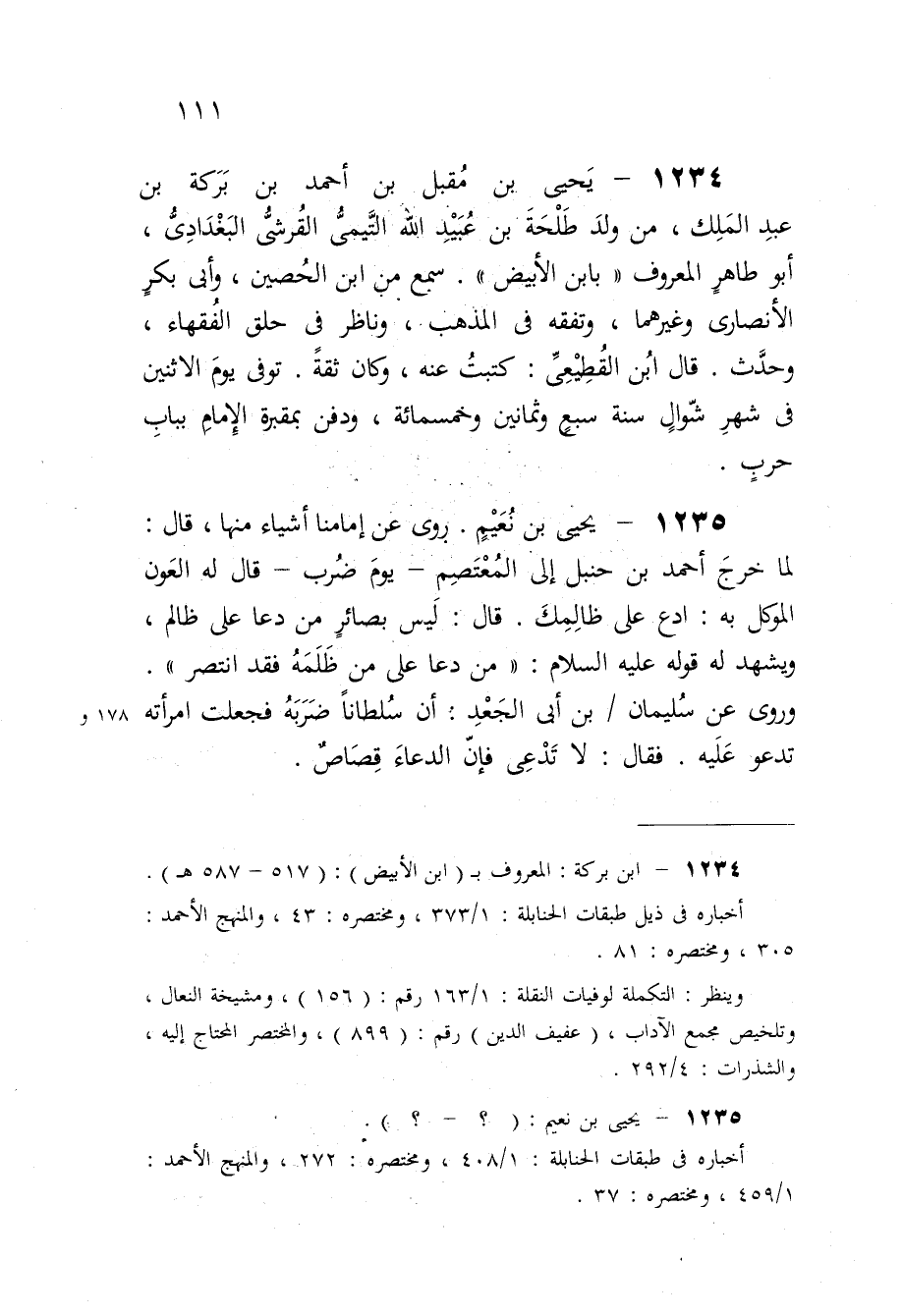 1234 - يحيى بن مقبل بن أَحْمد بن بركَة بن عبد الْملك من ولد طَلْحَة بن عبيد الله التيمى القرشى البغدادى أَبُو طَاهِر الْمَعْرُوف بِابْن الْأَبْيَض