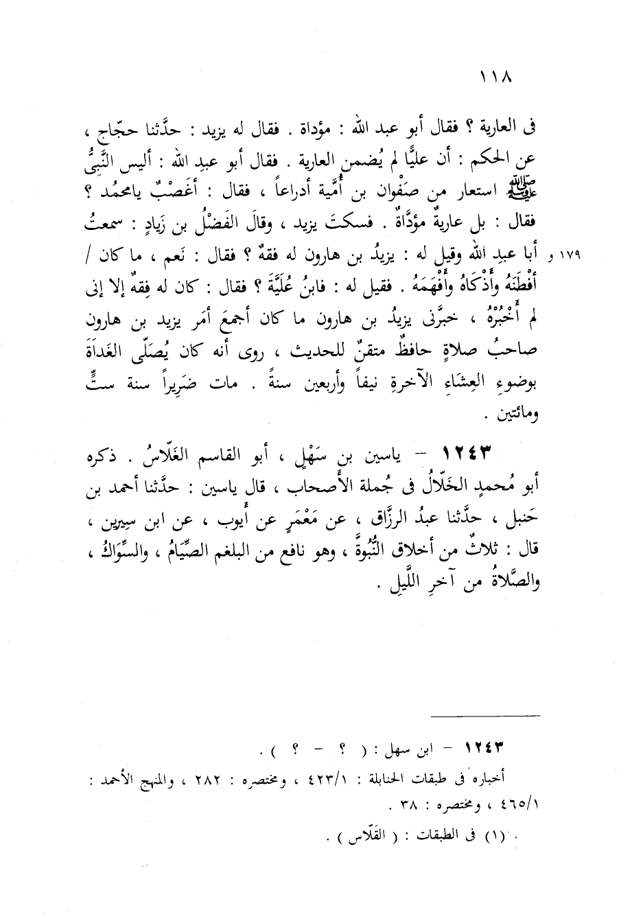 فَقيل لَهُ فَابْن علية فَقَالَ كَانَ لَهُ فقه إِلَّا إنى لم أخبرهُ خبرنى يزِيد بن هَارُون مَا كَانَ أجمع أَمر يزِيد بن هَارُون صَاحب صَلَاة حَافظ متقن للْحَدِيث روى أَنه كَانَ يصلى الْغَدَاة بِوضُوء الْعشَاء الاخرة نيفا وَأَرْبَعين سنة