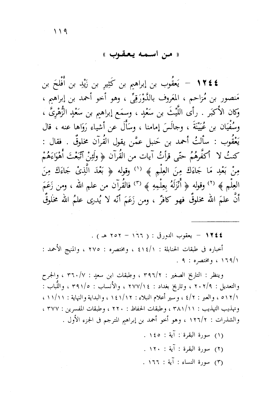1244 - يَعْقُوب بن إِبْرَاهِيم بن كثير بن زيد بن أَفْلح بن مَنْصُور بن مُزَاحم الْمَعْرُوف بالدورقى وَهُوَ اخو أَحْمد بن إِبْرَاهِيم وَكَانَ الْأَكْبَر