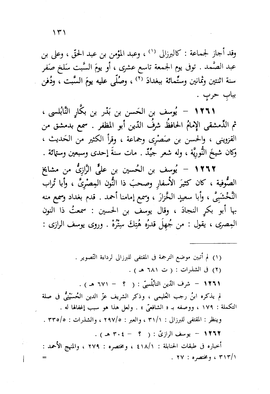 1261 - يُوسُف بن الْحسن بن بدر بن بكار النابلسى ثمَّ الدمشقى الإِمَام الْحَافِظ شرف الدّين أَبُو المظفر