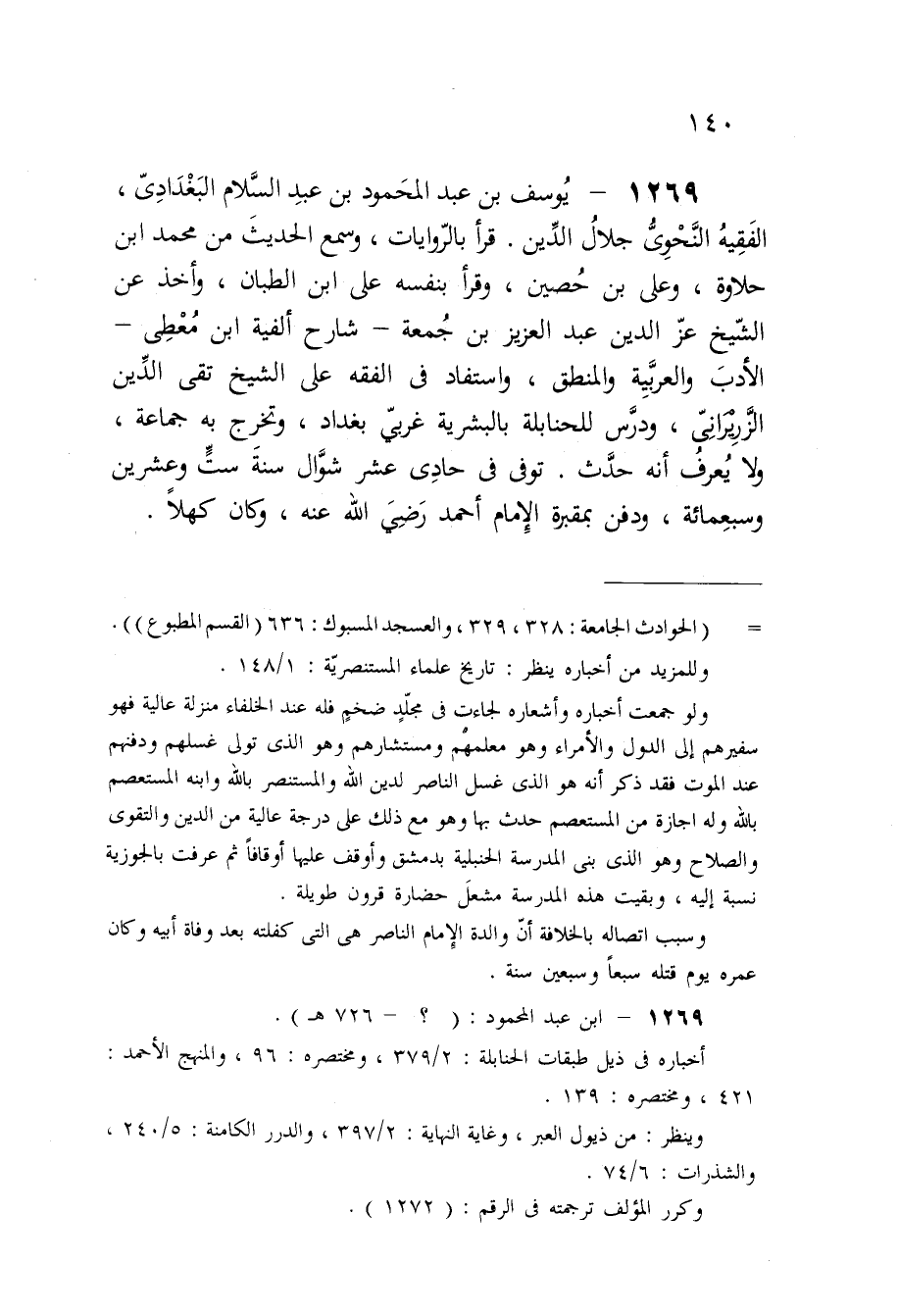 1269 - يُوسُف بن عبد الْمَحْمُود بن عبد السَّلَام البغدادى الْفَقِيه النحوى جلال الدّين