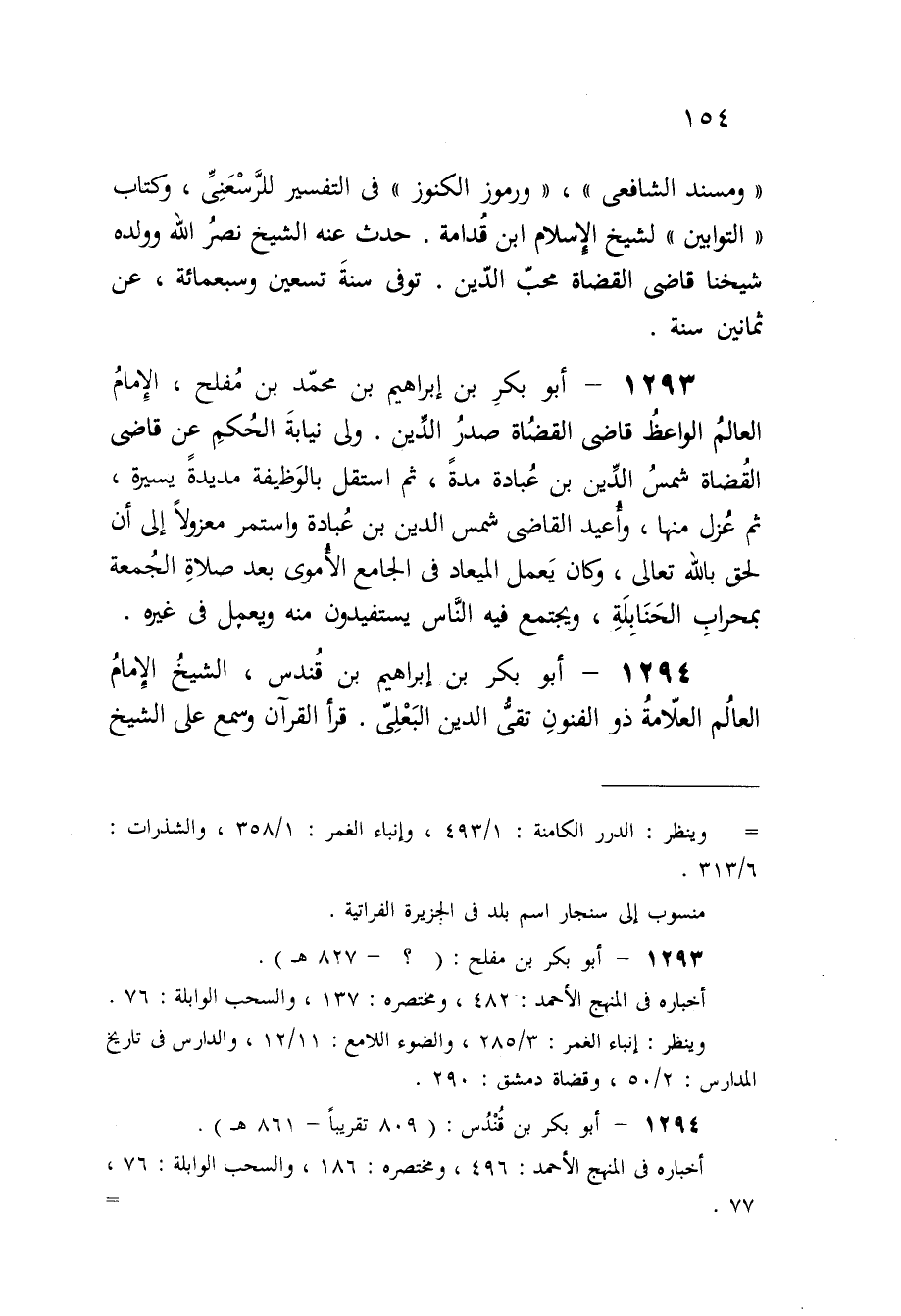 1293 - أَبُو بكر بن إِبْرَاهِيم بن مُحَمَّد بن مُفْلِح الإِمَام الْعَالم الْوَاعِظ قاضى الْقُضَاة صدر الدّين