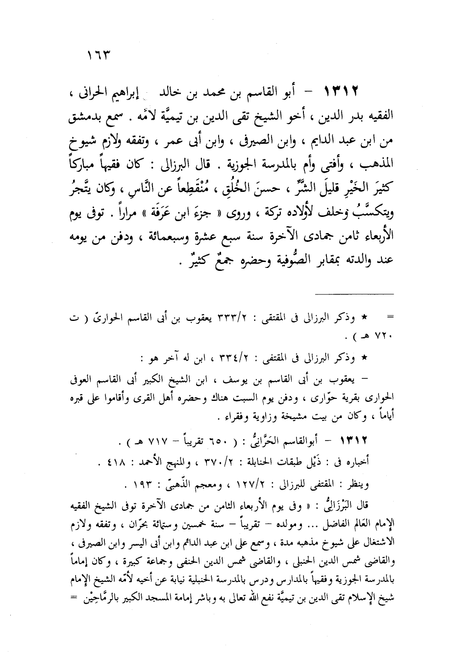 1312 - أَبُو الْقَاسِم بن مُحَمَّد بن خَالِد إِبْرَاهِيم الحرانى الْفَقِيه بدر الدّين أَخُو الشَّيْخ تقى الدّين بن تَيْمِية لأمه