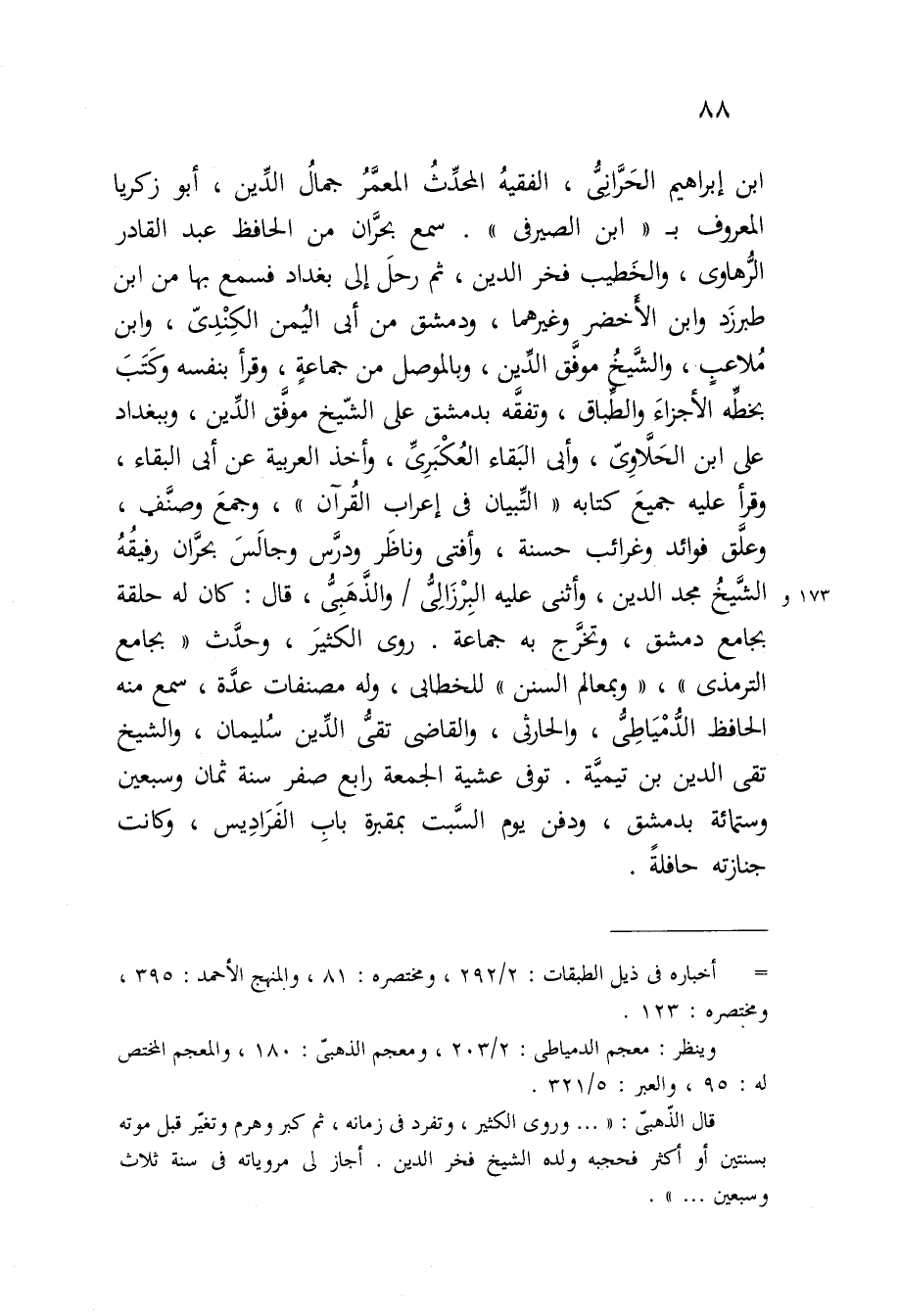 ابْن إِبْرَاهِيم الحرانى الْفَقِيه الْمُحدث المعمر جمال الدّين أَبُو زَكَرِيَّا الْمَعْرُوف ب ابْن الصيرفى