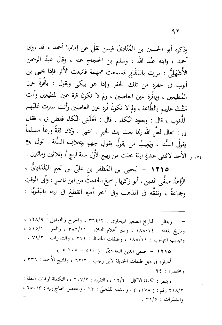 1215 - يحيى بن المظفر بن على بن نعيم البغدادى الزَّاهِد صفى الدّين أَبُو زَكَرِيَّا