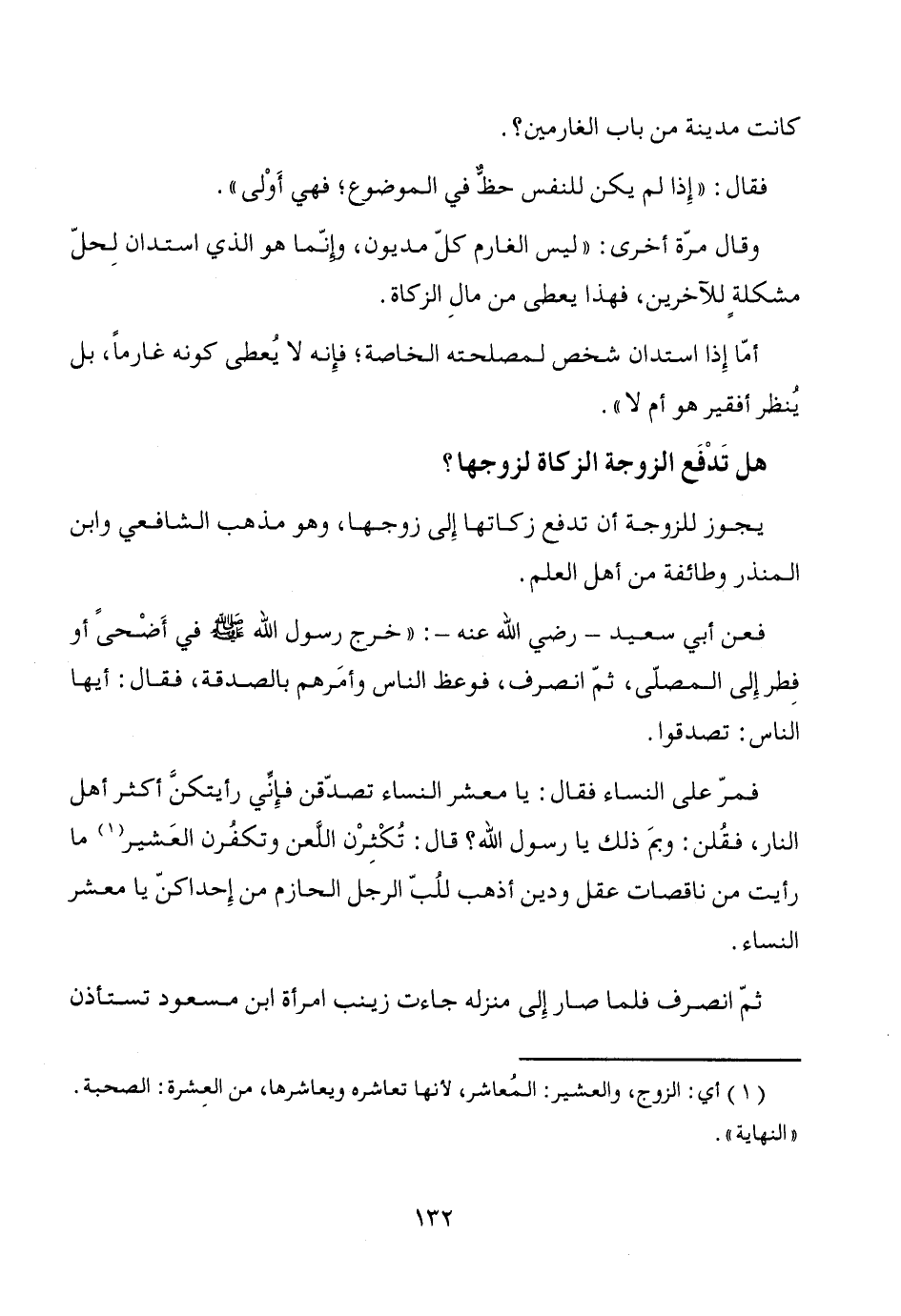 وقال مرّة أخرى: "ليس الغارم كلّ مديون، وإنّما هو الذي استدان لِحلّ مشكلةٍ للآخرين، فهذا يعطى من مالِ الزكاة.