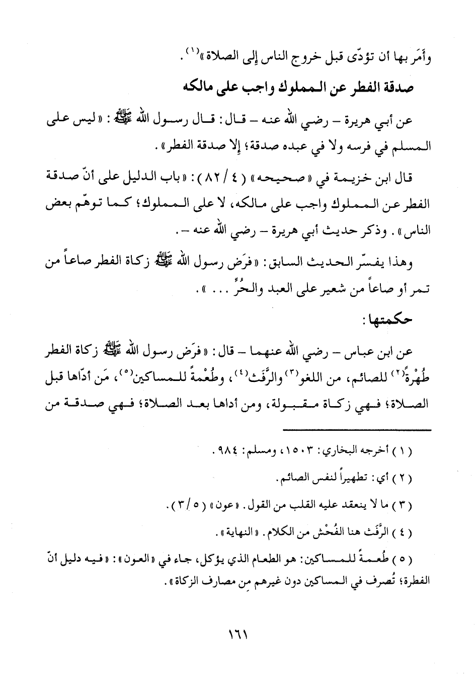 قال ابن خزيمة في "صحيحه" (4/ 82): "باب الدليل على أنّ صدقة الفطر عن المملوك واجب على مالكه، لا على المملوك؛ كما توهّم بعض الناس". وذكر حديث أبي هريرة -رضي الله عنه-.