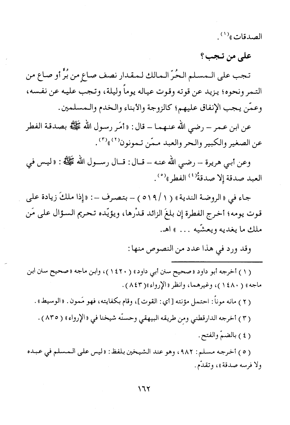 عن ابن عمر -رضي الله عنهما- قال: "أمَر رسول الله - صَلَّى اللَّهُ عَلَيْهِ وَسَلَّمَ - بصدقة الفطر عن الصغير والكبير والحر والعبد ممّن تمونون (¬2) " (¬3).