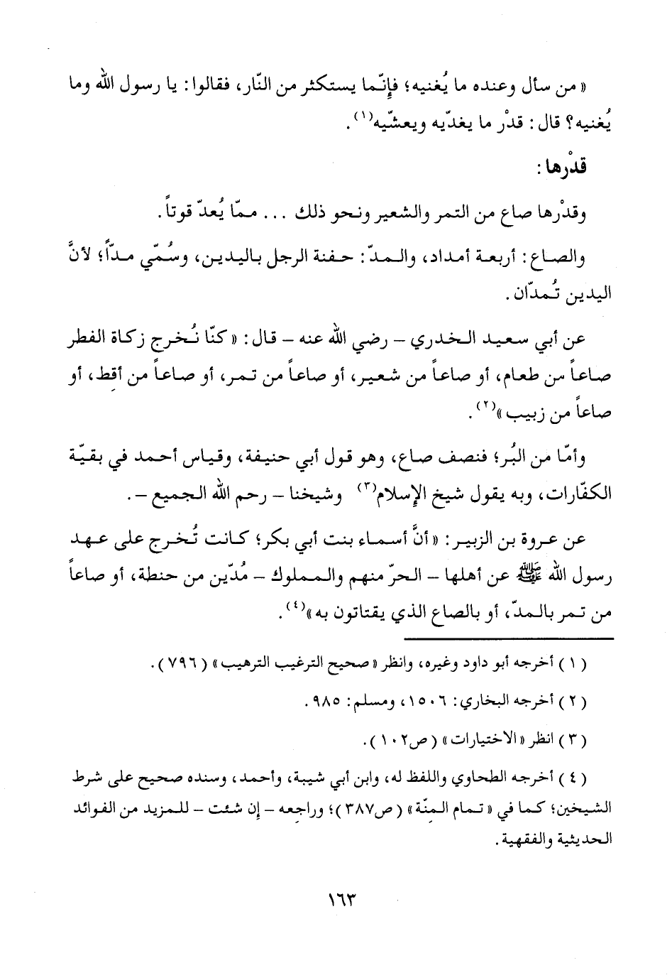 وقدْرها صاع من التمر والشعير ونحو ذلك ... ممّا يعدّ قوتاً.