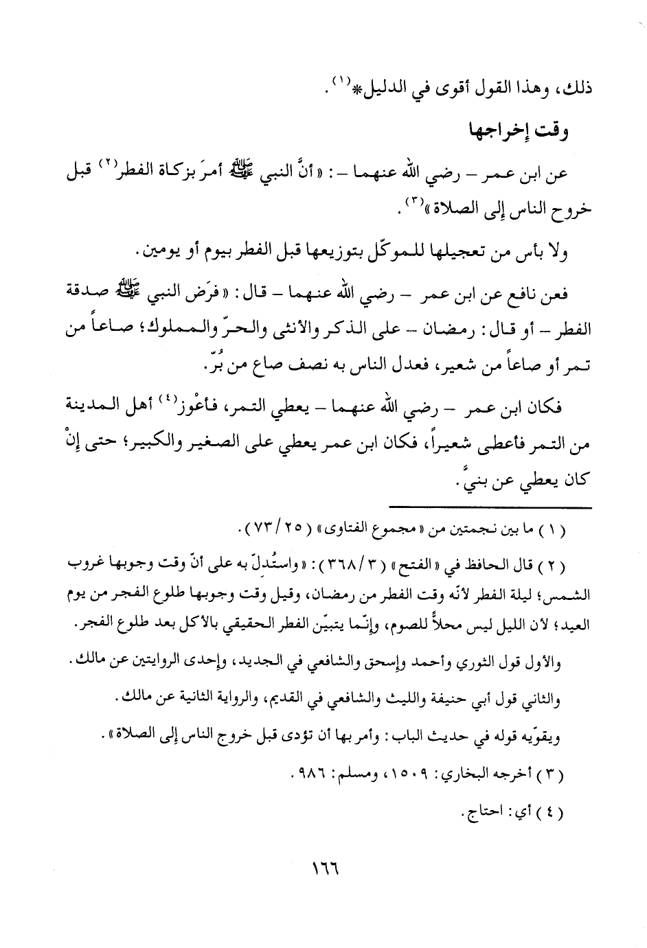 (¬2) قال الحافظ في "الفتح" (3/ 368): "واستُدِلّ به على أن وقت وجوبها غروب الشمس؛ ليلة الفطر لأنه وقت الفطر من رمضان، وقيل وقت وجوبها طلوع الفجر من يوم العيد؛ لأن الليل ليس محلاًّ للصوم، وإنما يتبيّن الفطر الحقيقي بالأكل بعد طلوع الفجر.