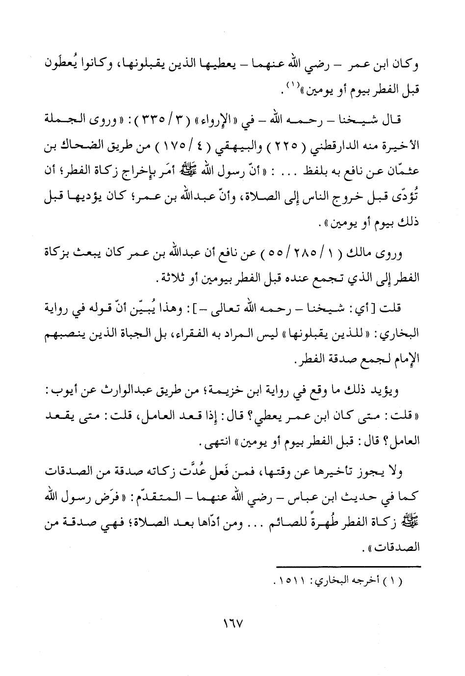 قلت [أي: شيخنا -رحمه الله تعالى-]: وهذا يُبيّن أنّ قوله في رواية البخاري: "للذين يقبلونها" ليس المراد به الفقراء، بل الجباة الذين ينصبهم الإِمام لجمع صدقة الفطر.