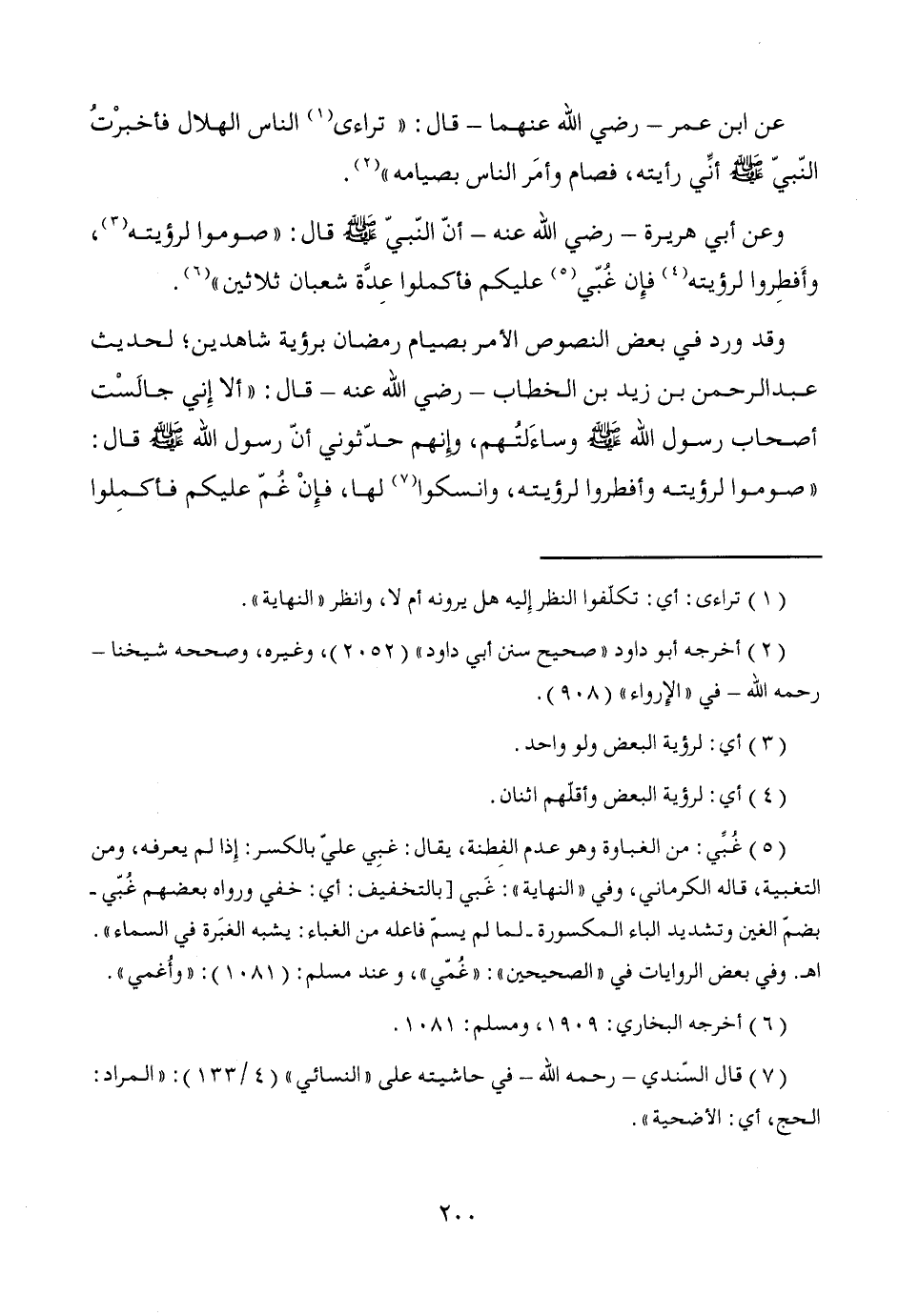 وقد ورد في بعض النصوص الأمر بصيام رمضان برؤية شاهدين؛ لحديث عبد الرحمن بن زيد بن الخطاب -رضي الله عنه- قال: "ألا إِني جالَسْت أصحاب رسول الله - صَلَّى اللَّهُ عَلَيْهِ وَسَلَّمَ - وساءَلتُهم، وإنهم حدّثوني أنّ رسول الله - صَلَّى اللَّهُ عَلَيْهِ وَسَلَّمَ - قال: "صوموا لرؤيته وأفطروا لرؤيته، وانسكوا (¬7) لها، فإِنْ غمّ عليكم فأكمِلوا
