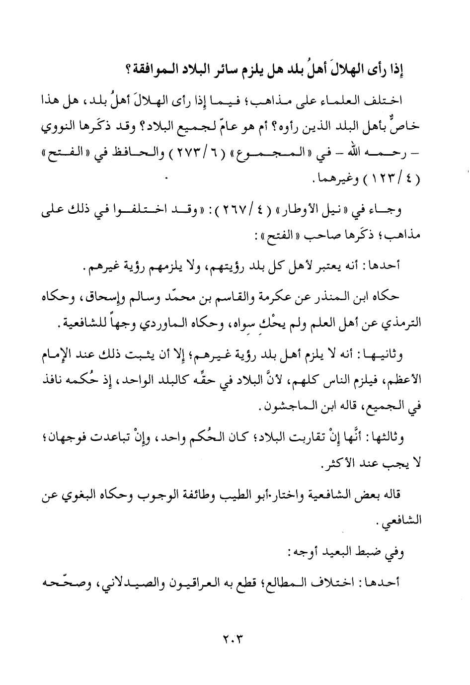 اختلف العلماء على مذاهب؛ فيما إِذا رأى الهلالَ أهلُ بلد، هل هذا خاصٌّ بأهل البلد الذين رأوه؟ أم هو عامّ لجميع البلاد؟ وقد ذكَرها النووي -رحمه الله- في "المجموع" (6/ 273) والحافظ في "الفتح" (4/ 123) وغيرهما.