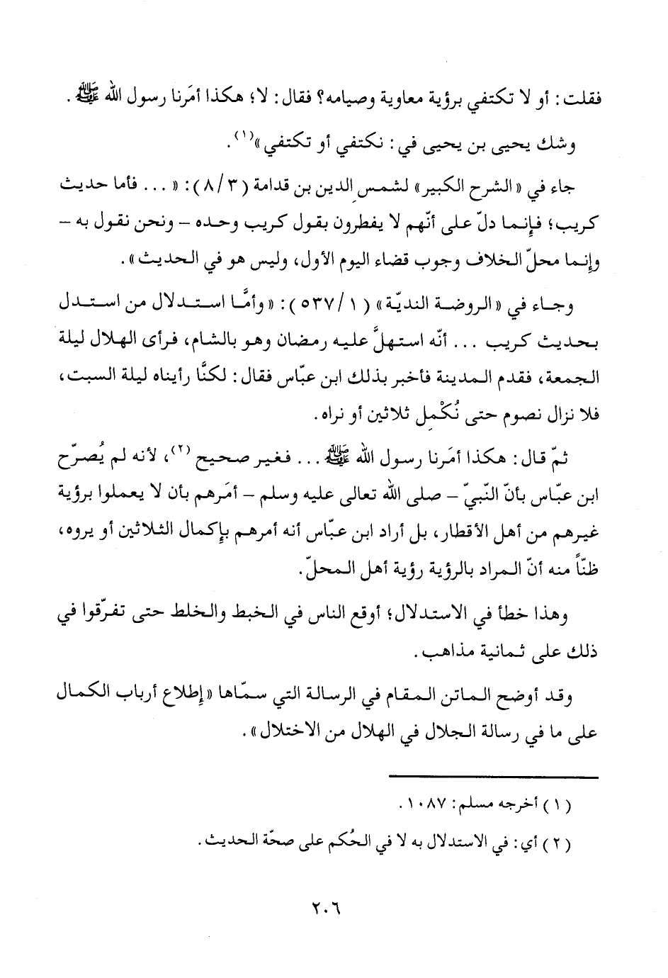 ثمّ قال: هكذا أمَرنا رسول الله - صَلَّى اللَّهُ عَلَيْهِ وَسَلَّمَ - ... فغير صحيح (¬2)، لأنه لم يُصرّح ابن عبّاس بأنّ النّبيّ- صلى الله تعالى عليه وسلم- أمَرهم بأن لا يعملوا برؤية غيرهم من أهل الأقطار، بل أراد ابن عبّاس أنه أمرهم بإِكمال الثلاثين أو يروه، ظنّاً منه أنّ المراد بالرؤية رؤية أهل المحلّ.