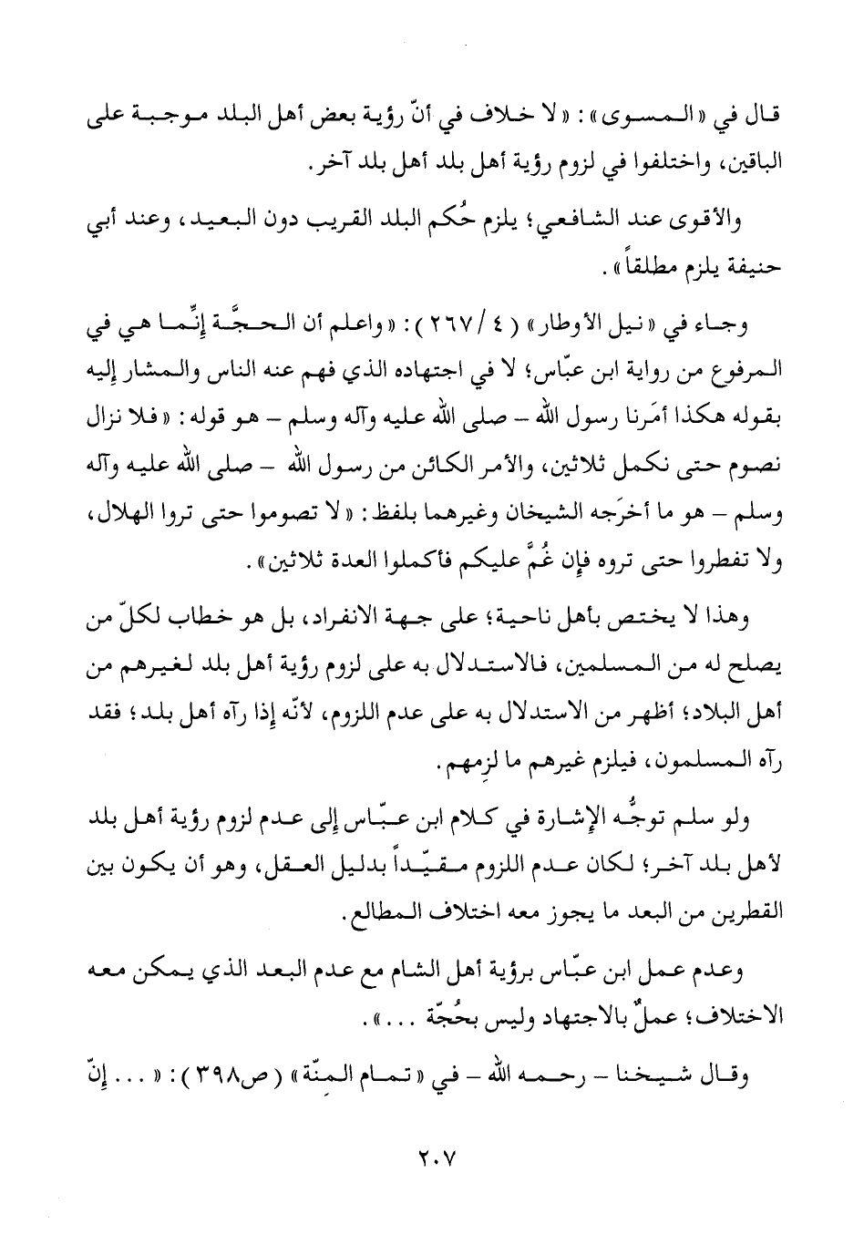 وعدم عمل ابن عبّاس برؤية أهل الشام مع عدم البعد الذي يمكن معه الاختلاف؛ عملٌ بالاجتهاد وليس بحُجّة ... ".