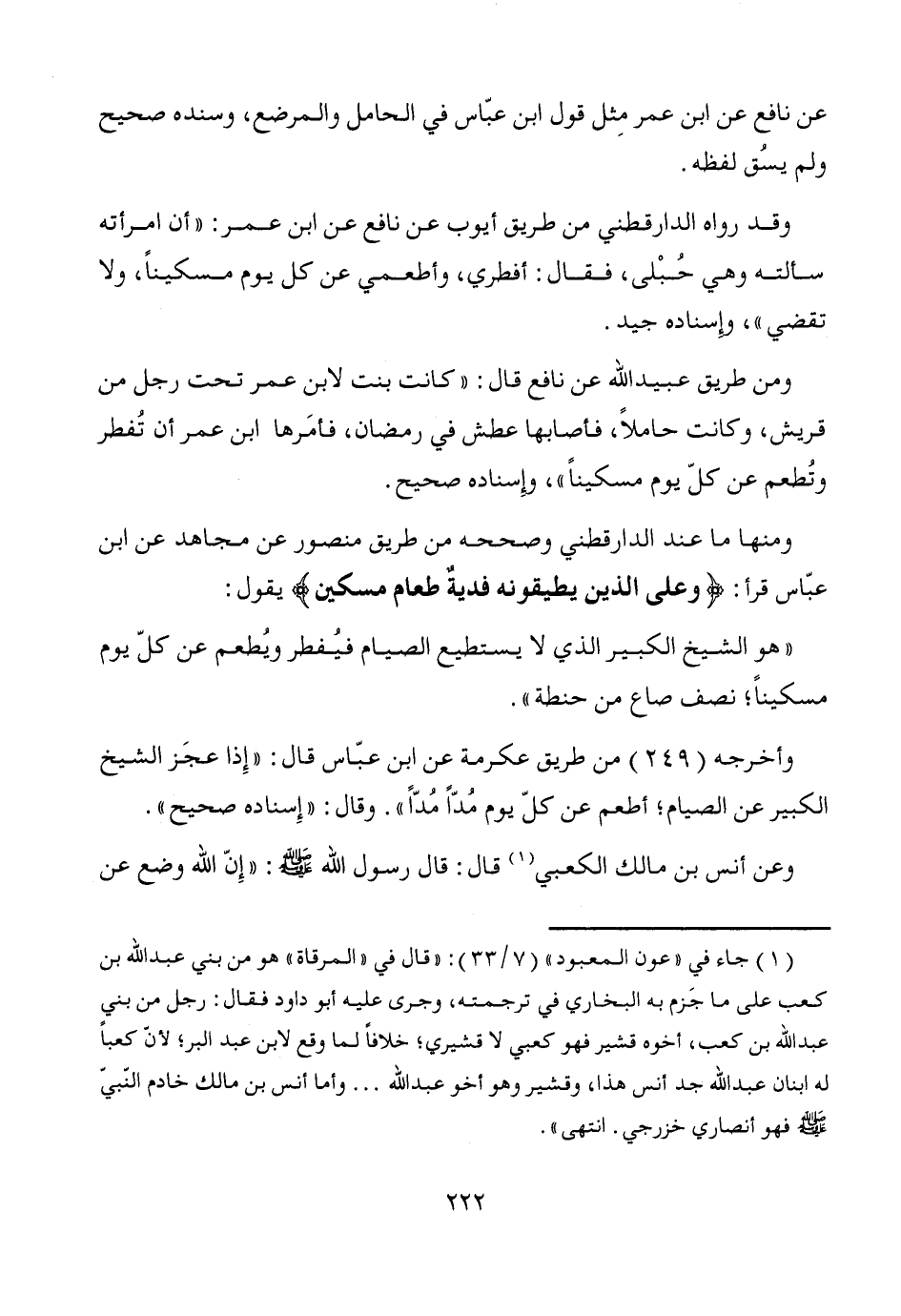 ومنها ما عند الدارقطني وصححه من طريق منصور عن مجاهد عن ابن عبّاس قرأ: {وعلى الذين يطيقونه فديةٌ طعام مسكين} يقول: