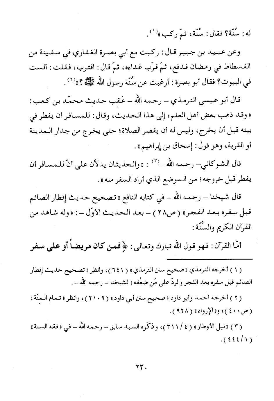 (¬1) أخرجه الترمذي "صحيح سنن الترمذي" (641)، وانظر "تصحيح حديث إِفطار الصائم قبل سفره بعد الفجر والردّ على مَن ضعَّفه " لشيخنا -رحمه الله-.