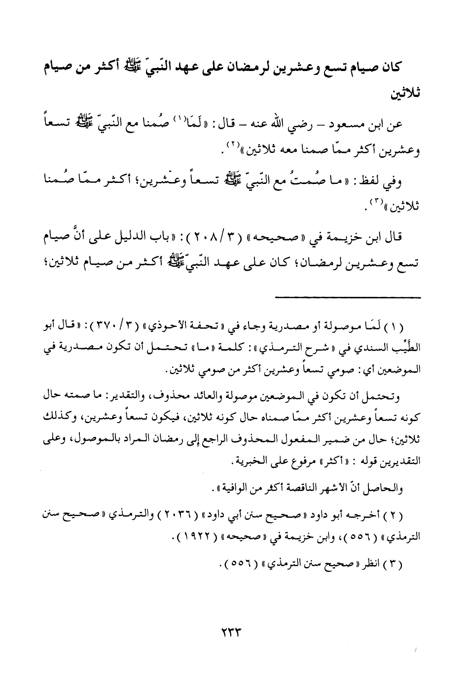 كان صيام تسع وعشرين لرمضان على عهد النّبيّ - صَلَّى اللَّهُ عَلَيْهِ وَسَلَّمَ - أكثر من صيام ثلاثين
