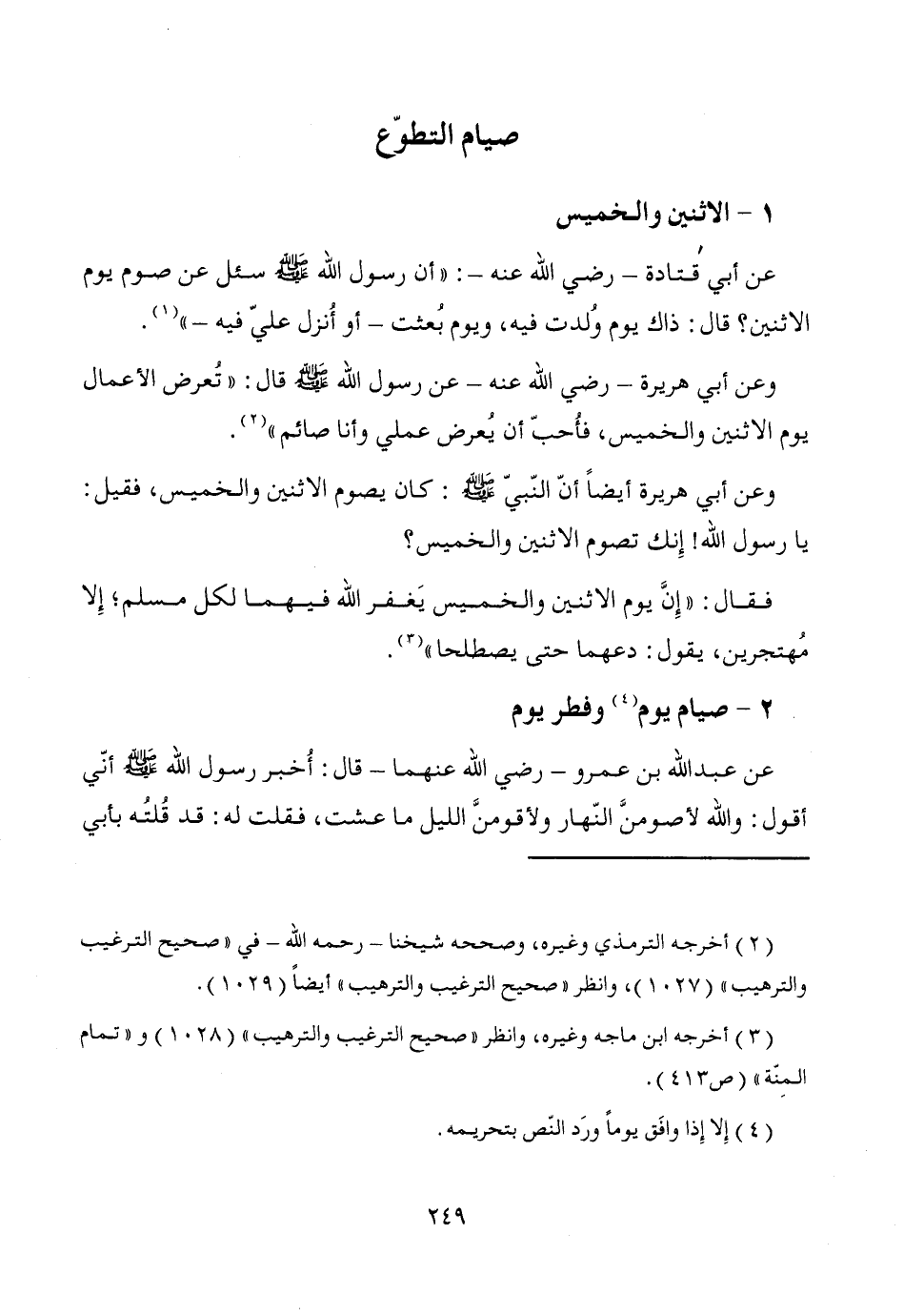 وعن أبي هريرة أيضاً أنّ النّبيّ - صَلَّى اللَّهُ عَلَيْهِ وَسَلَّمَ -: كان يصوم الاثنين والخميس، فقيل: يا رسول الله! إِنك تصوم الاثنين والخميس؟