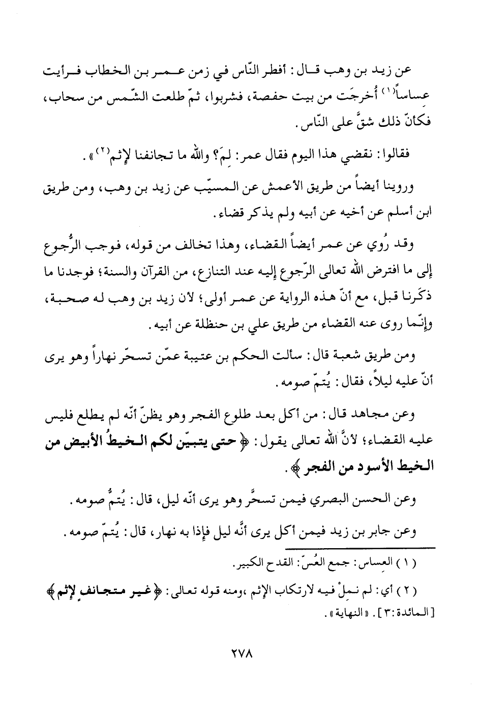 فقالوا: نقضي هذا اليوم فقال عمر: لِمَ؟ والله ما تجانفنا لإِثم (¬2) ".