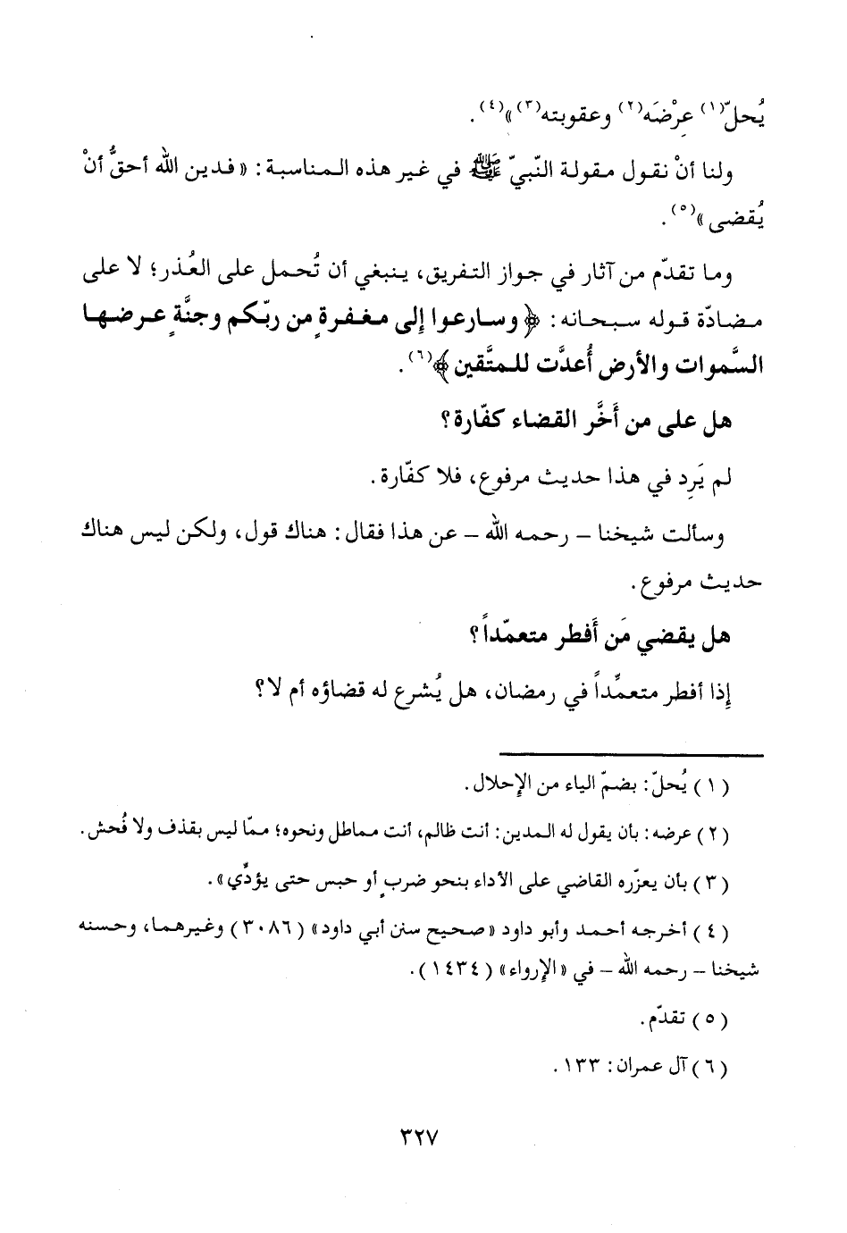 ولنا أنْ نقول مقولة النّبيّ - صَلَّى اللَّهُ عَلَيْهِ وَسَلَّمَ - في غير هذه المناسبة: "فدين الله أحقُّ أنْ يُقضى" (¬5).