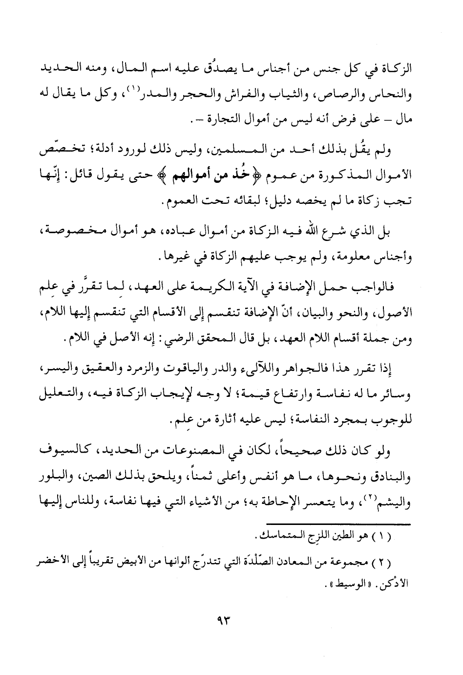 ولو كان ذلك صحيحاً، لكان في المصنوعات من الحديد، كالسيوف والبنادق ونحوها، ما هو أنفس وأعلى ثمناً، ويلحق بذلك الصين، والبلور واليشم (¬2)، وما يتعسر الإِحاطة به؛ من الأشياء التي فيها نفاسة، وللناس إِليها