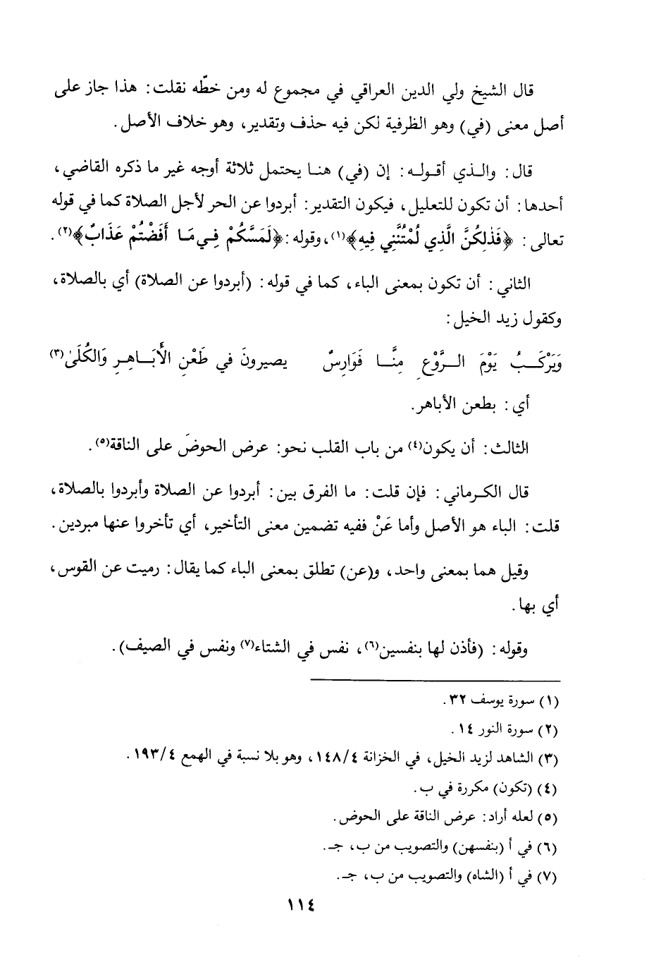 الثاني: أن تكون بمعنى الباء، كما في قوله: (أبردوا عن الصلاة) أي بالصلاة، وكقول زيد الخيل: