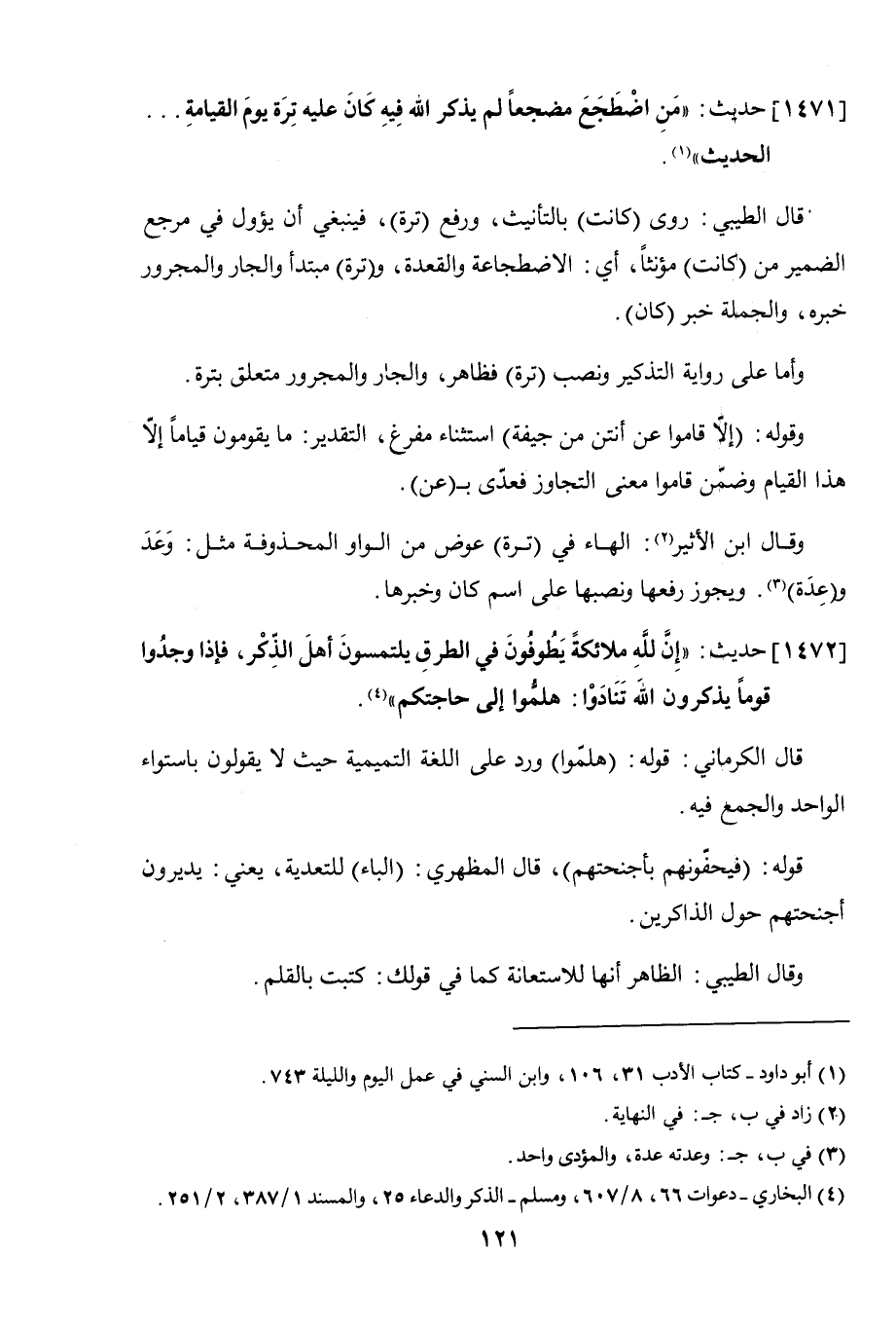 1471 - حديث: "من اضطجع مضجعًا لم يذكر الله فيه كان عليه ترة يوم القيامة .. الحديث".