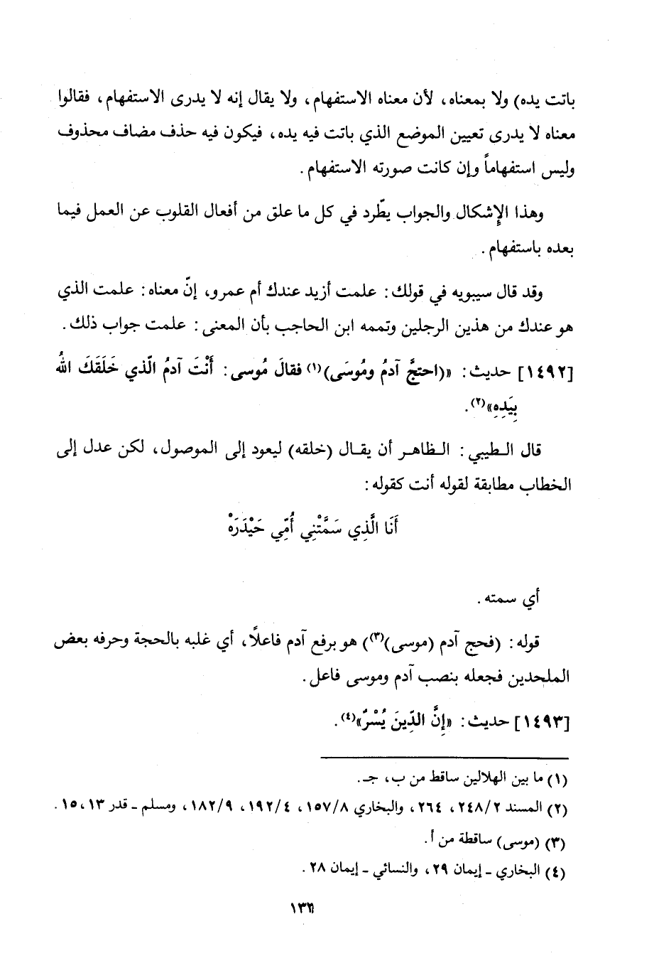 1492 - حديث: "احتج آدم وموسى فقال موسى: أنت آدم الذي خلقك الله بيده".