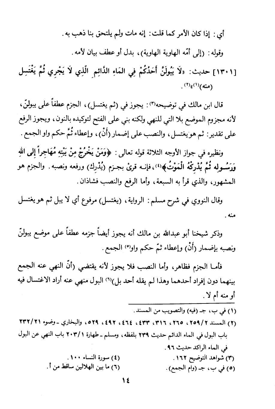 1301 - حديث: "لا يبولنّ أحدكم في الماء الدائم الذي لا يجري ثم يغتسل منه".
