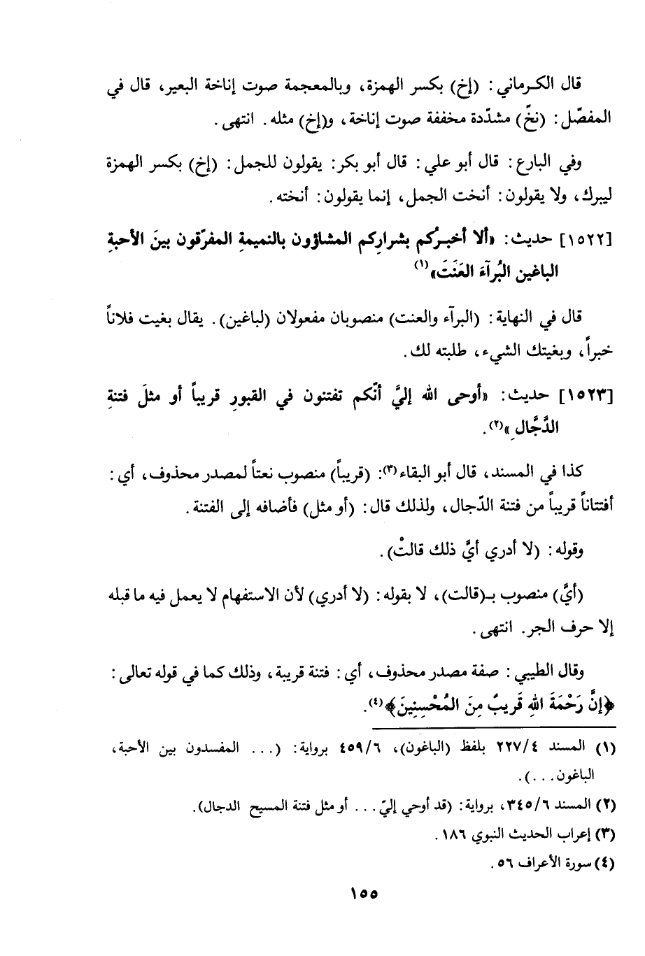 1522 - حديث: "ألا أخبركم بشراركم المشاؤون بالنميمة المفرقون بين الأحبة الباغين البرآء العنت".