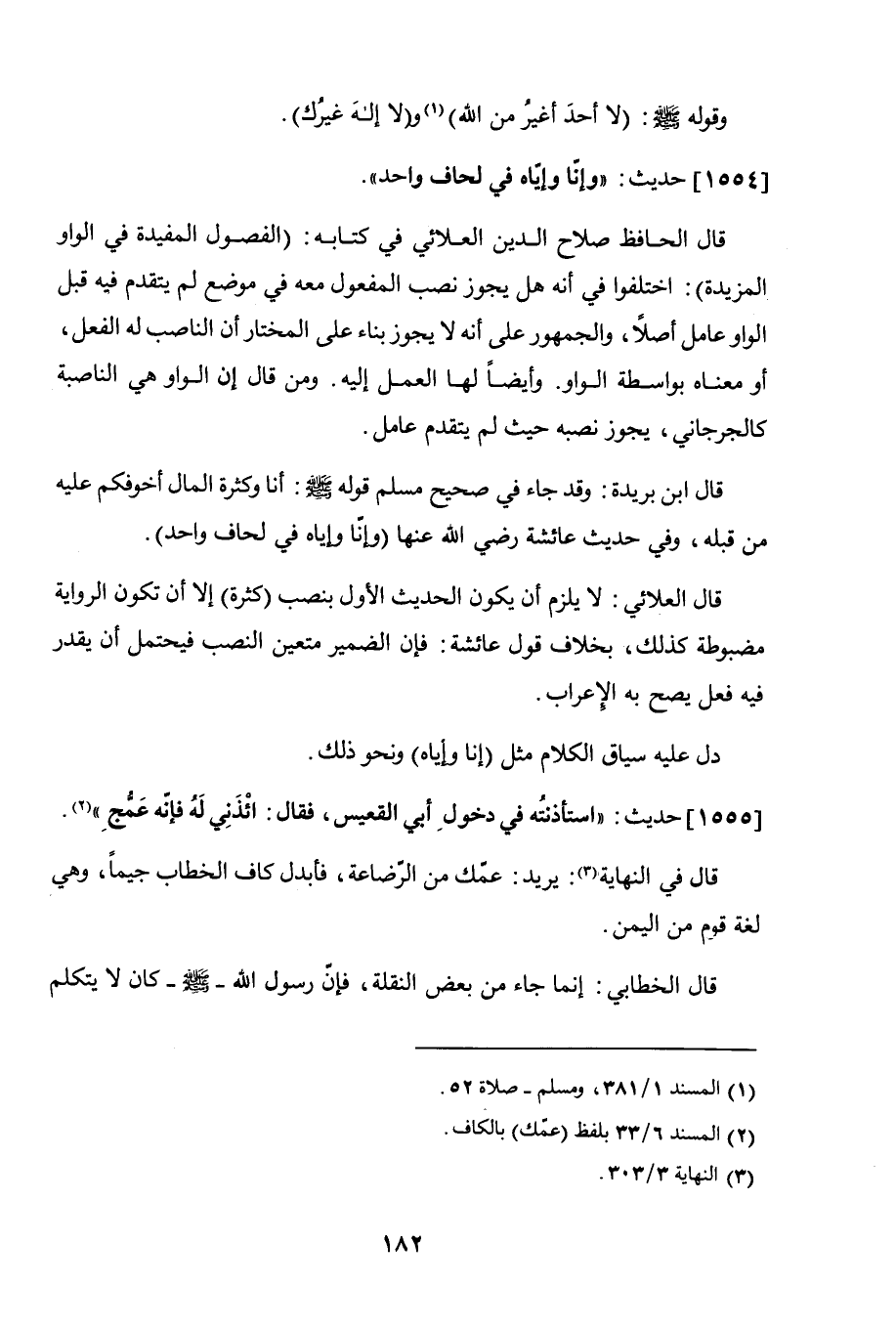 قال العلائي: لا يلزم أن يكون الحديث الأول بنصب (كثرة) إلا أن تكون الرواية مضبوطة كذلك، بخلاف قول عائشة، فإن الضمير متعين النصب فيحتمل أن يقدر فيه فعل يصح به الإعراب.