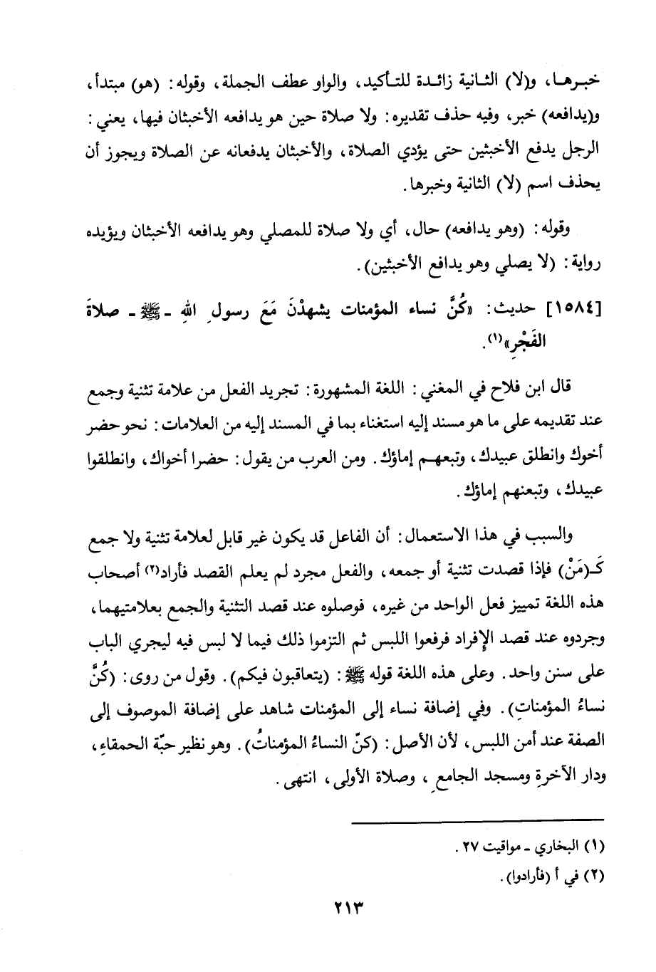 1584 - حديث: "كن نساء المؤمنات يشهدن مع رسول الله صلى الله عليه وسلم صلاة الفجر".