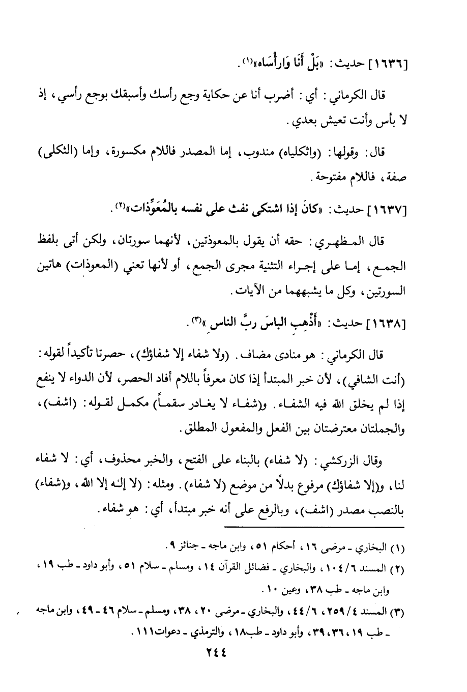1637 - حديث: "كان إذا اشتكى نفث على نفسه بالمعوذات".
