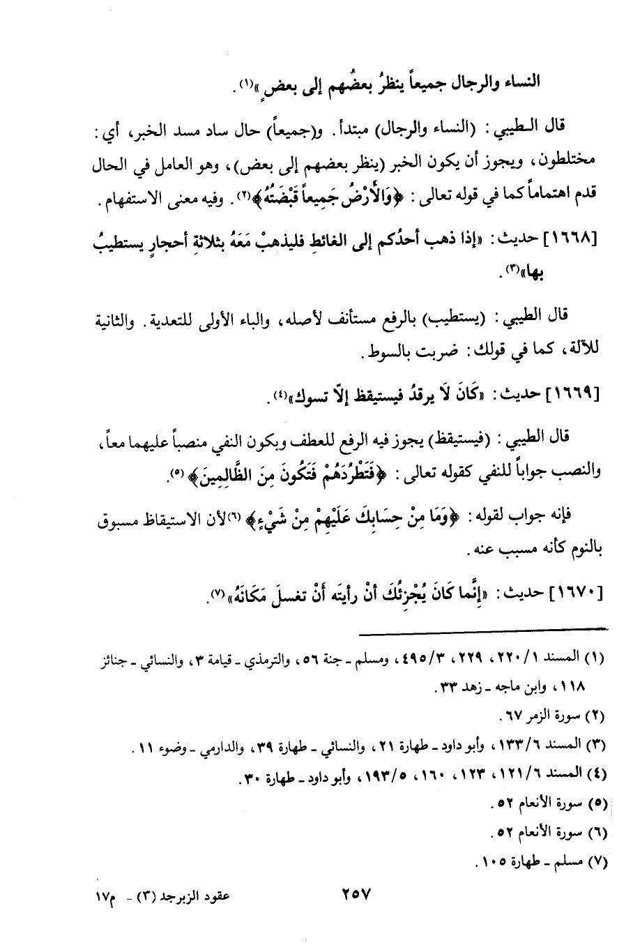 1668 - حديث: "إذا ذهب أحدكم إلى الغائط فليذهب معه بثلاثة أحجار يستطيب بها".