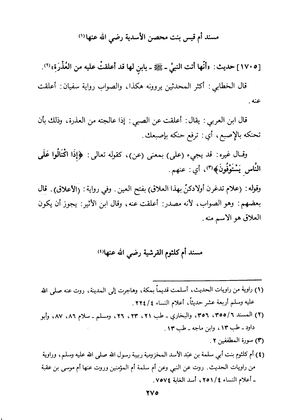مسند أم قيس بنت محصن الأسدية رضي الله عنها
