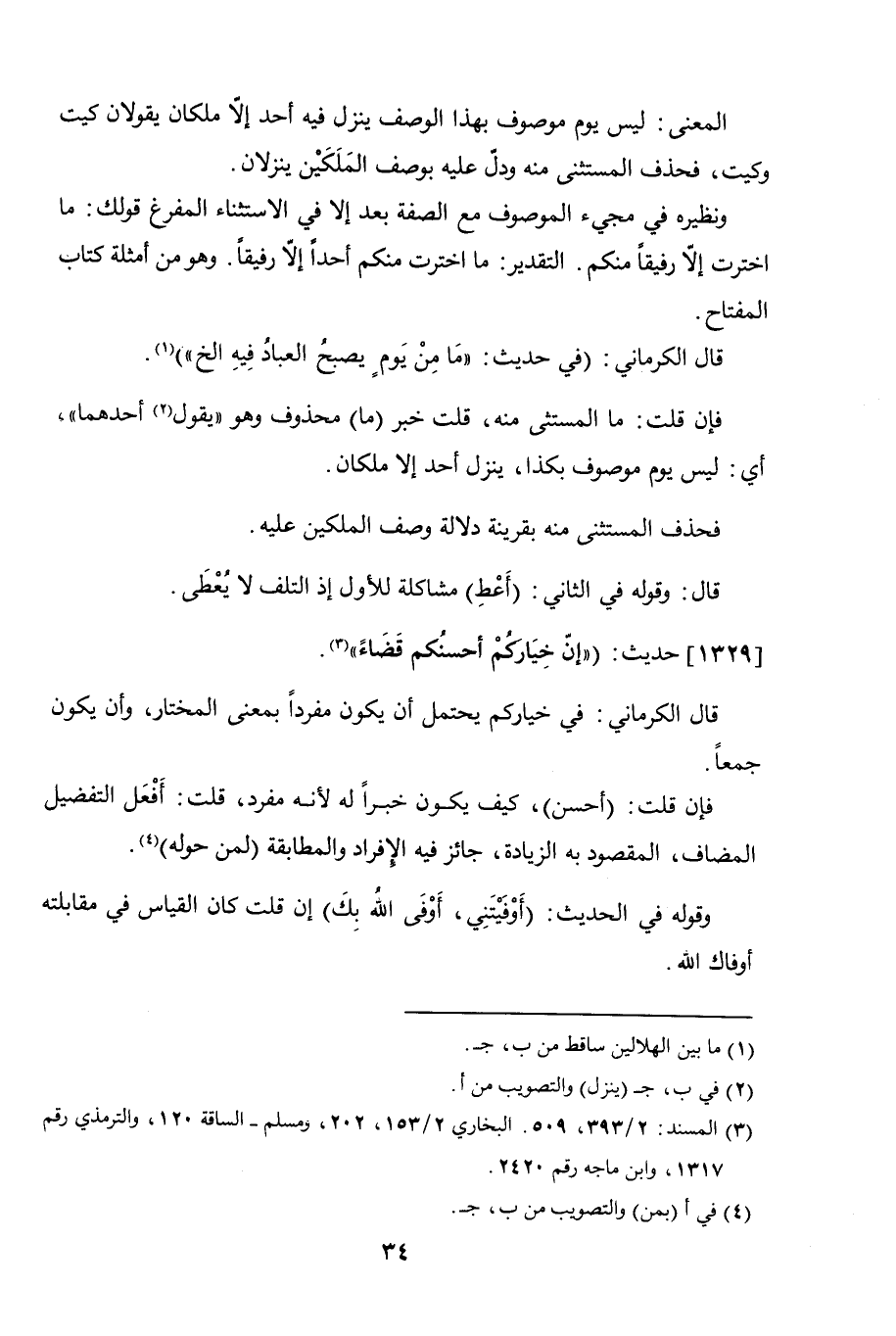 قال الكرماني: (في حديث: "ما من يوم يصبح العباد فيه الخ").