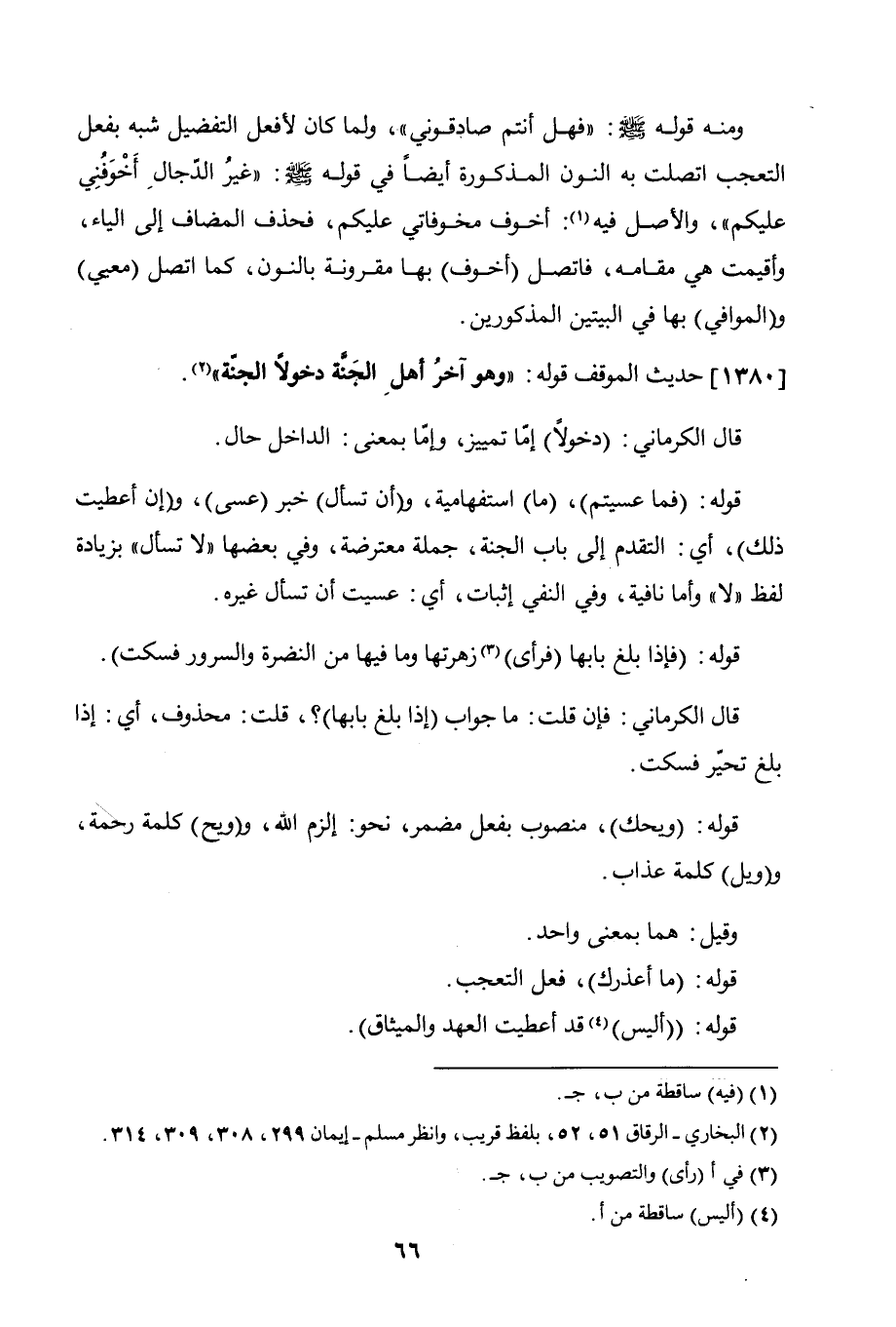 قوله (فما عسيتم)، ما استفهامية، و (أن تسأل) خبر عسى، و (إن أعطيت ذلك)، أي: التقدم إلى باب الجنة، جملة معترضة، وفي بعضها"لا تسأل" بزيادة لفظ "لا" وأما نافية، ونفي النفي إثبات، أي: عسيت أي تسأل غيره.