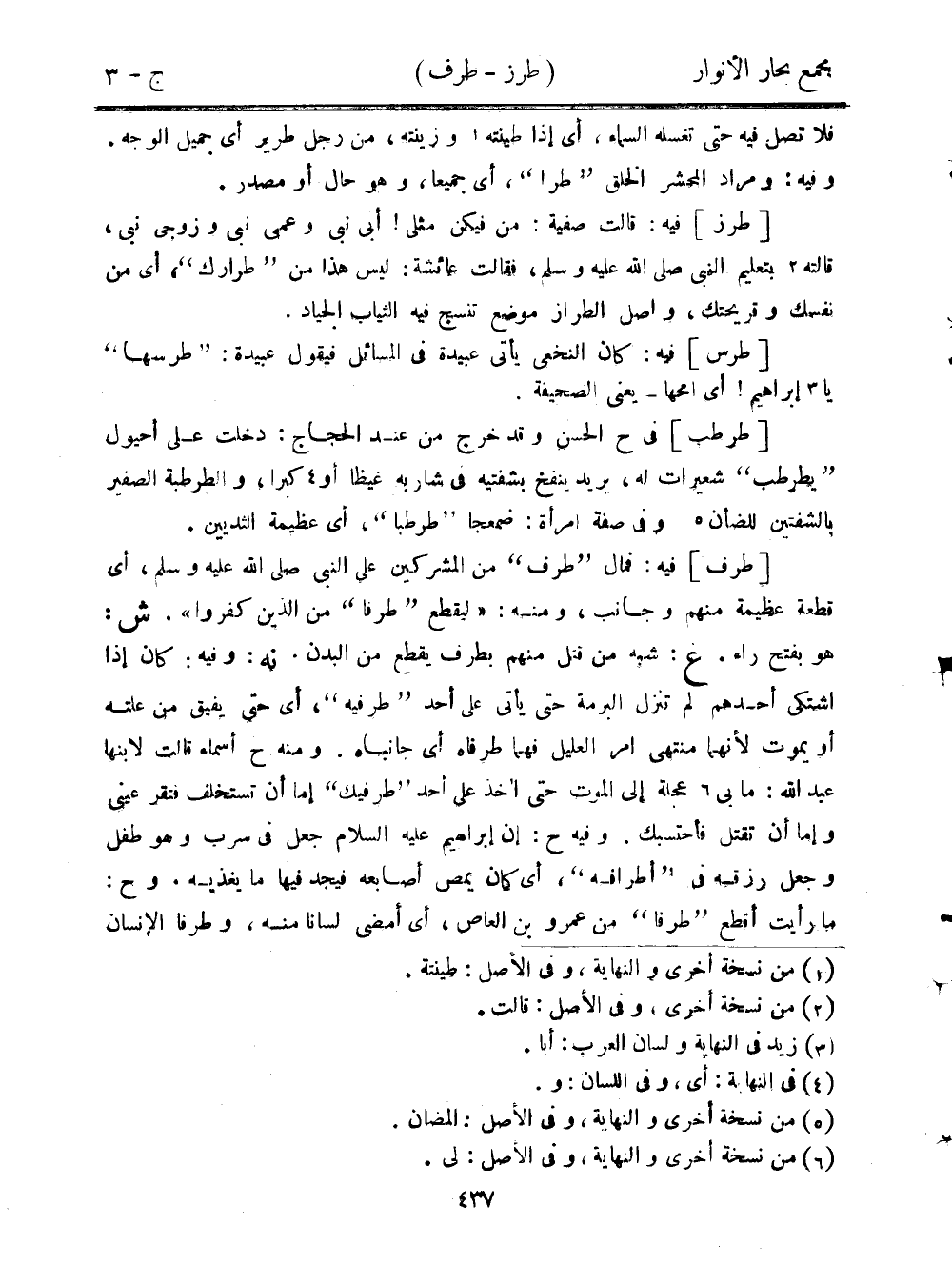 فلا تصل فيه حتى تغسله السماء، أي إذا طينته وزينته، من رجل طرير أي جميل الوجه. وفيه: ومراد المحشر الخلق "طرا"، أي جميعًا، وهو حال أو مصدر.