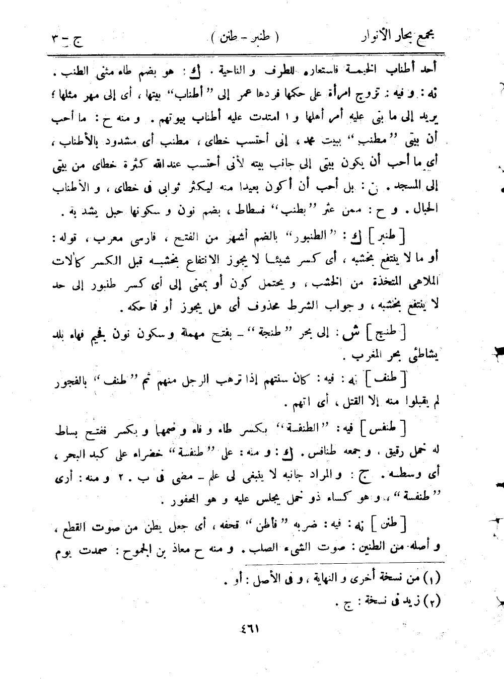 [طنبر] ك: "الطنبور" بالضم أشهر من الفتح، فارسي معرب، قوله: أو ما لا ينتفع بخشبه، أي كسر شيئًا لا يجوز الانتفاع بخشبه قبل الكسر كآلات الملاهي المتخذة من الخشب، ويحتمل كون أو بمعنى إلى أي كسر طنبور إلى حد لا ينتفع بخشبه، وجواب الشرط محذوف أي هل يجوز أو فما حكمه.